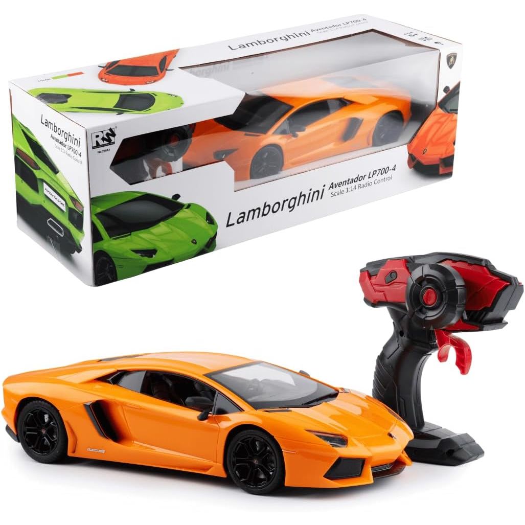 - OFFICIAL LAMBORGHINI AVENTADOR LP 700-4 TOY CAR - 1:14 scale supercar replica with sleek black windows and sporty orange or green design