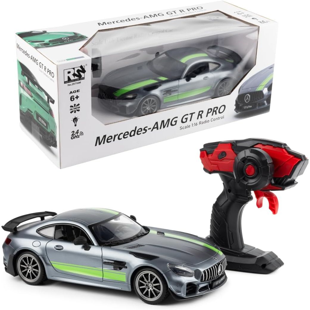 - STYLISH MERCEDES-AMG GT R PRO MODEL - 1:16 scale RC cars with a detailed grey and green color scheme and realistic interior