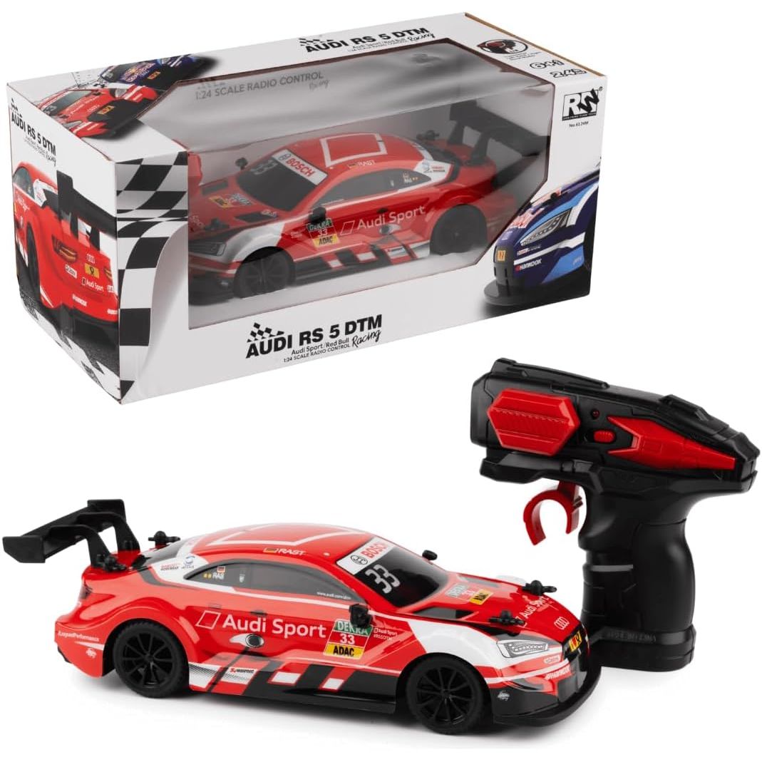 - 1:24 SCALE AUDI RS5 DTM TOY CAR REPLICA - Detailed RC model of the iconic Red Bull & Audi Sport racing car toy built with premium plastic and metal parts for durability and authentic design