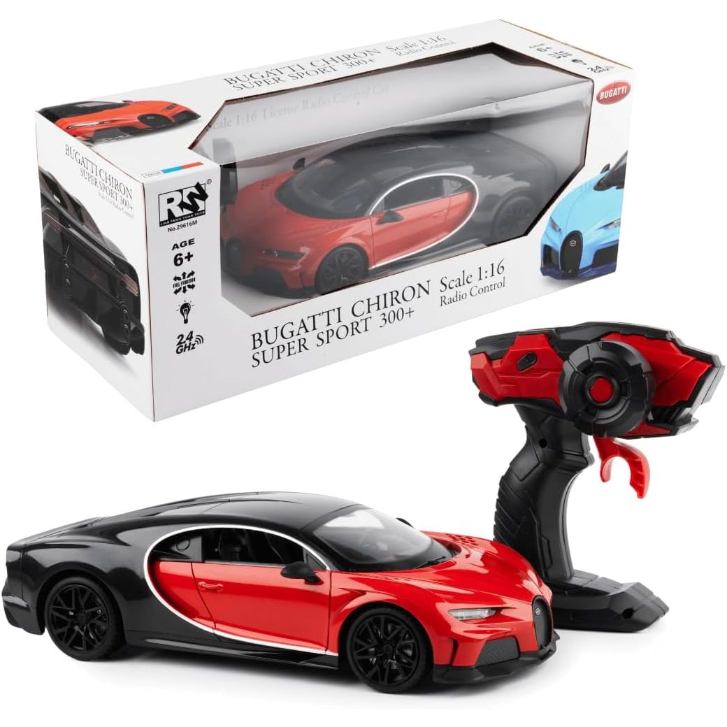 - ICONIC BUGATTI CHIRON SUPER SPORT STYLING - 1:16 scale remote car in striking red and blue with an intricately detailed interior