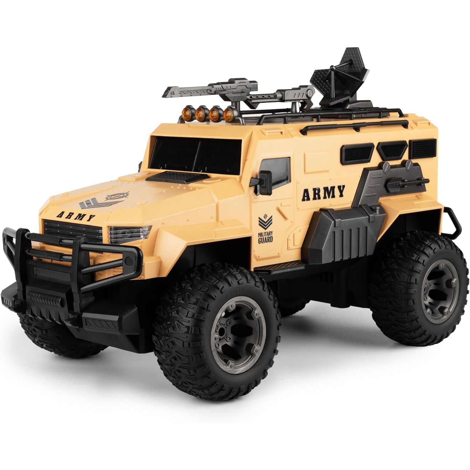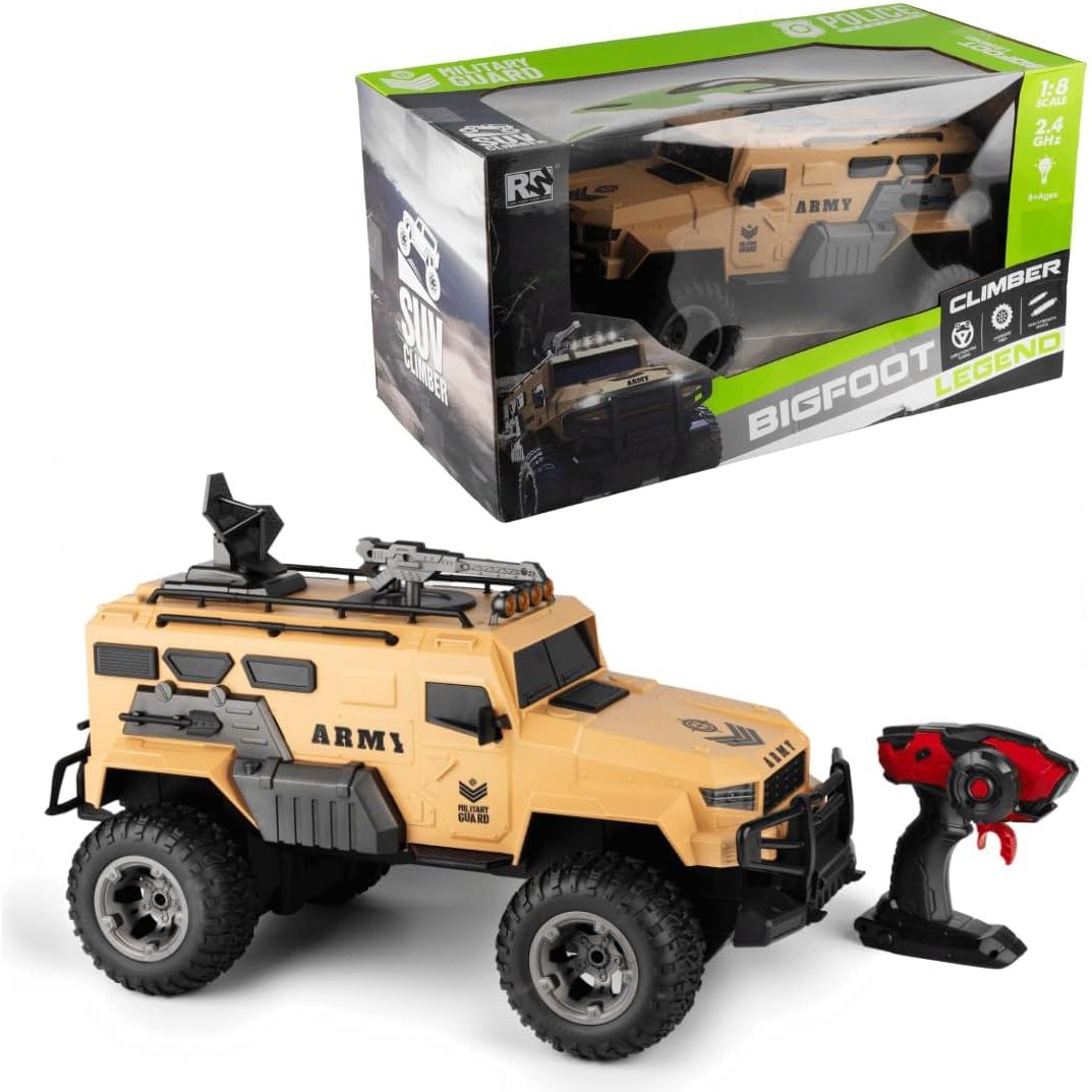 RC Drift Car Big Foot Army RC Truck - 2.4GHz Off-Road Vehicle with Military Accessories - Remote Control car for Kids & Adults - Rechargeable Battery - Scale 1:8 - Yellow
