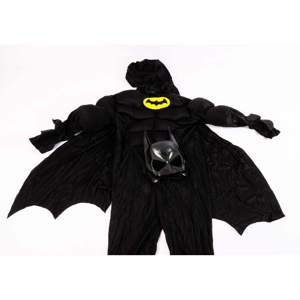Unleash your inner Dark Knight with this sleek Batman Costume in classic black. Featuring a detailed muscle chest jumpsuit, cape, mask, and utility belt, this costume is perfect for Halloween, cosplay, or themed parties. Channel Gotham’s greatest hero with a bold look that's both iconic and powerful.