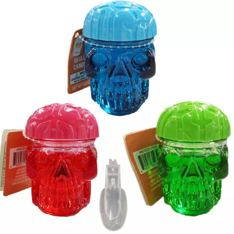 The Candy Toy KT Skull Slime Candy CT0979 is a spooky and fun treat designed to delight kids and candy enthusiasts alike. This Halloween-themed candy features a skull-shaped container filled with gooey, fruit-flavored slime candy. The slime has a viscous, honey-like texture, making it perfect for scooping with the included plastic spoon. Flavors include apple, strawberry, and blueberry, adding a sweet and slightly sour twist to the experience. The resealable container ensures freshness, allowing for multiple servings.