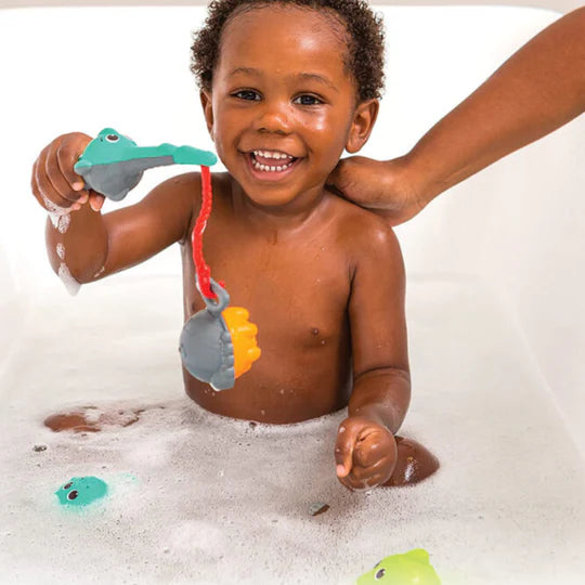 Squeeze, squirt and play with 3 colourful pals in a mesh bag. Easy for little hands to hold and soft for grabbing or gumming. The set includes a seahorse, octopus and a frog. Great bath time toys for your little one.