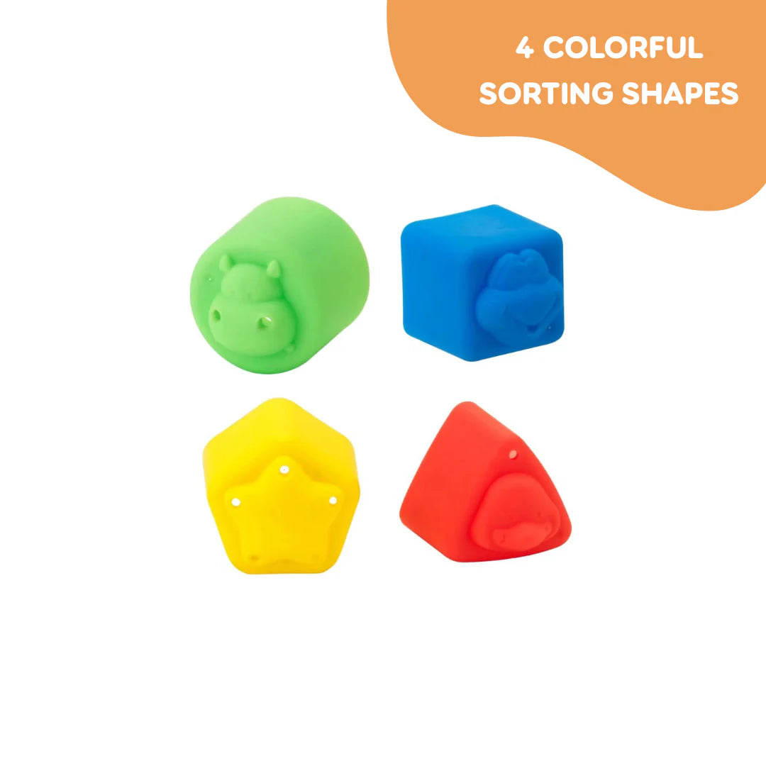 Toddlers will have a great time throwing blocks of various shapes into the appropriate holes. A great toy for a child while bathing.