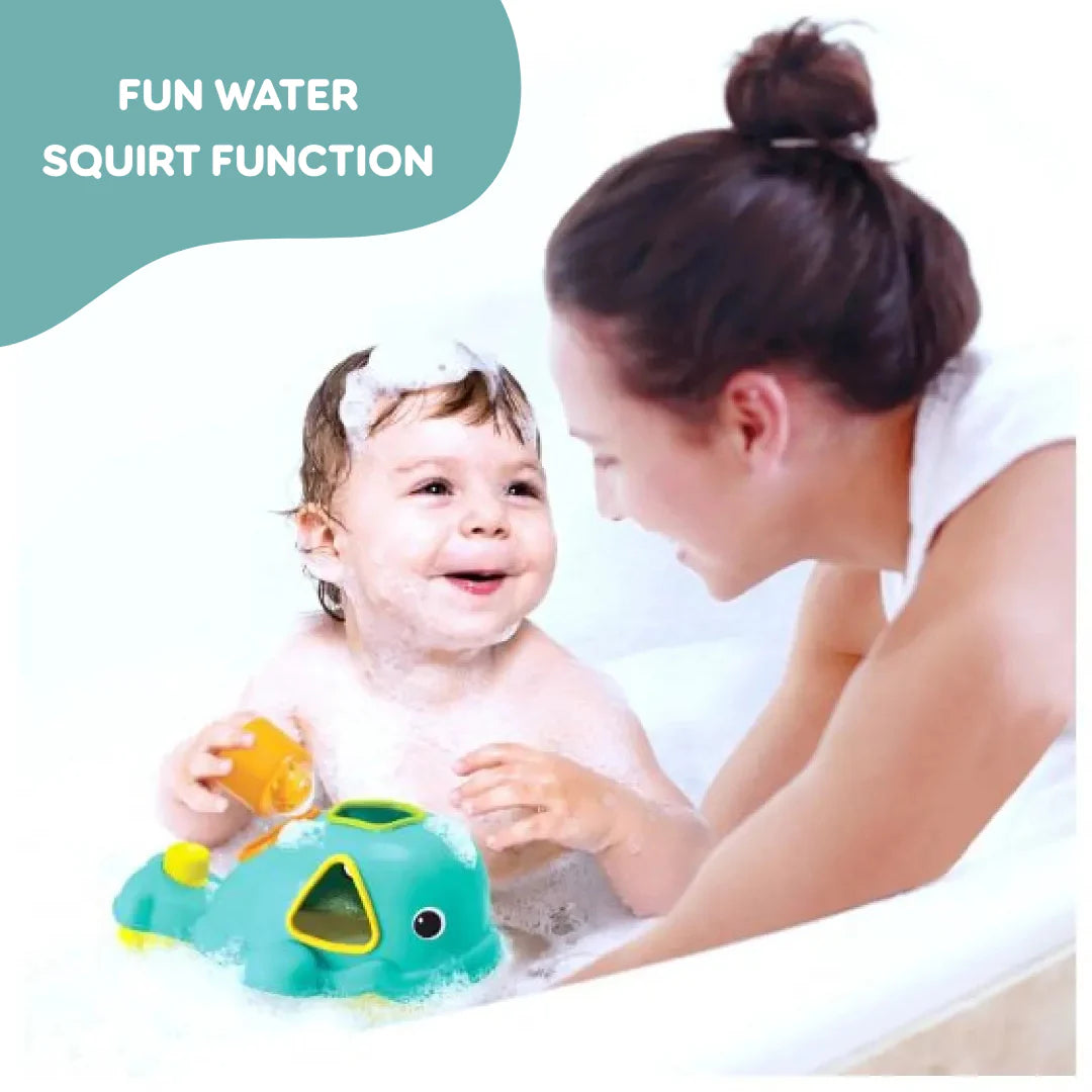 Whale - shape sorter with water cups will provide great fun while bathing. After pressing the button on the tail, the whale will release a fountain of water!