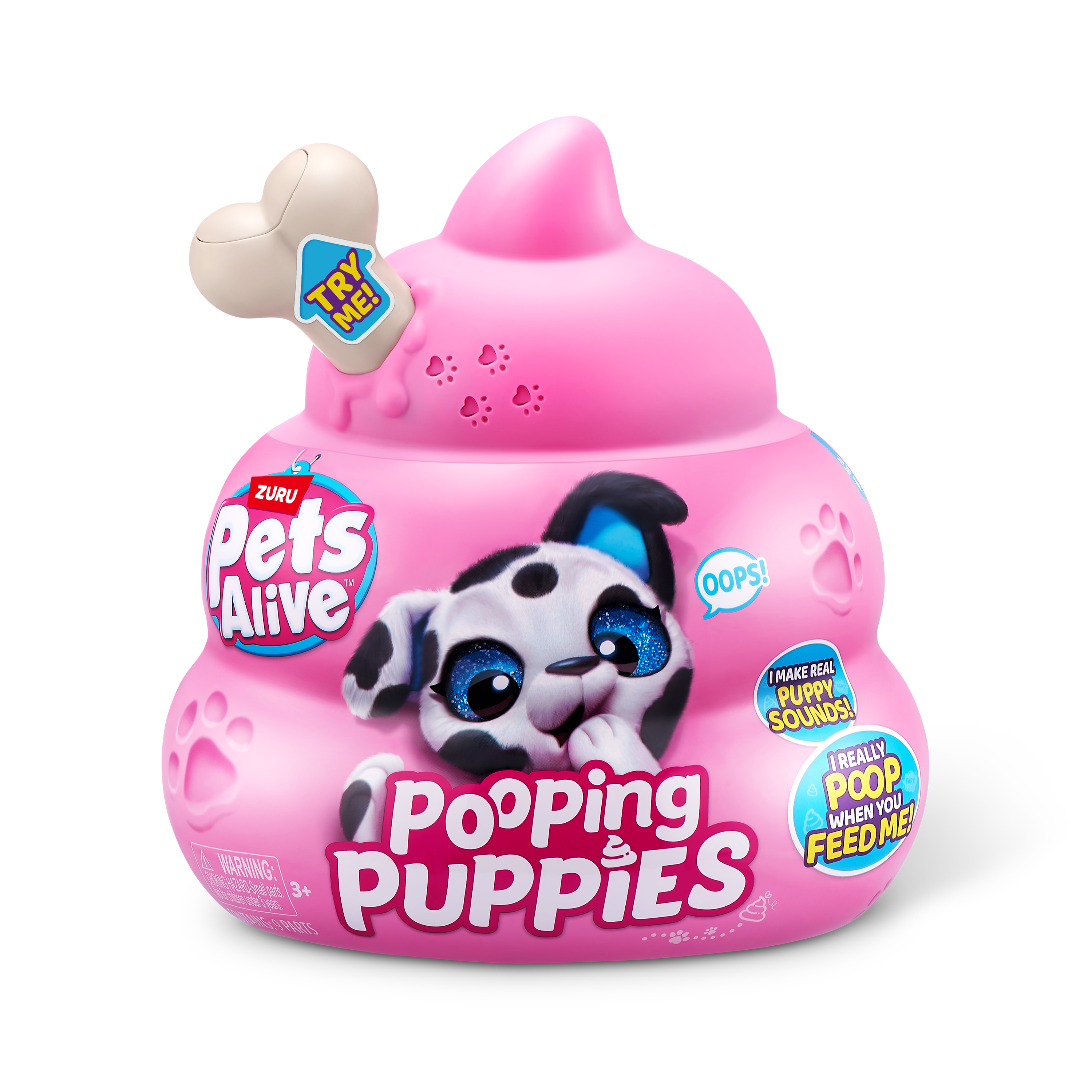 - Feed, poop, repeat: This Pooping Puppy is just like a real pet. Feed it again and again but uh-oh he'll be ready to go again!