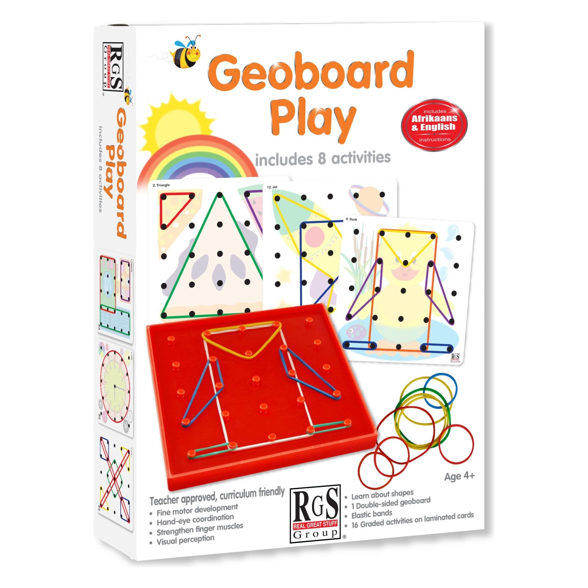 RGS Geoboard Play is an engaging educational tool designed to enhance fine motor skills and spatial reasoning in young learners. This set includes a double-sided geoboard with an 11x11 pin grid and an 11-pin isometric grid, accompanied by colorful elastic bands and 16 graded activity cards. Children can create shapes, patterns, and designs, promoting creativity and understanding of geometric concepts such as symmetry, area, and perimeter. Ideal for ages 4 and up, this hands-on activity fosters visual perception, hand-eye coordination, and early math skills.