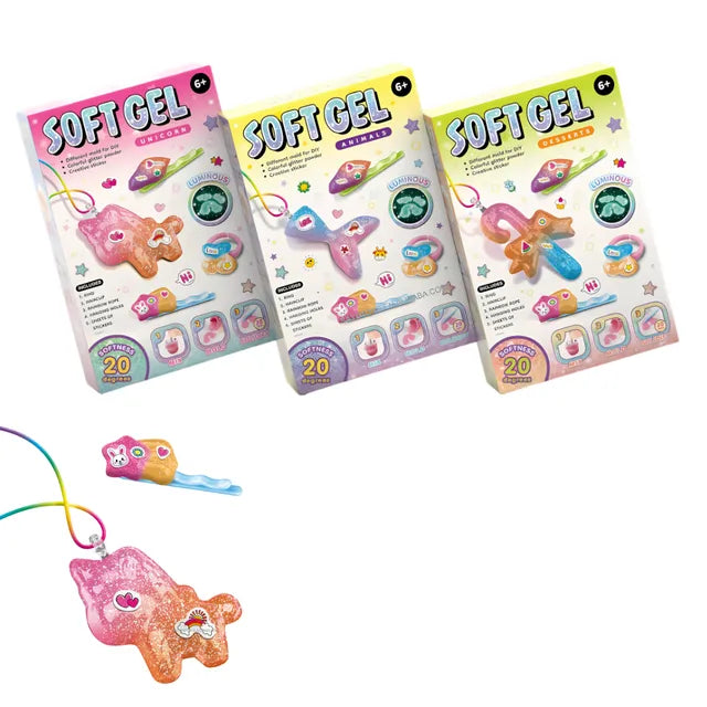 Create your own glowing jewelry with the Soft Gel Necklace Making Set! This fun and creative kit includes everything kids need to design custom gel necklaces. With colorful soft gels, molds, and cords, children can mix, shape, and wear their unique creations. Perfect for parties, craft time, or gift-giving, this set encourages creativity and hands-on fun for kids aged 5 and up. Sold per piece.