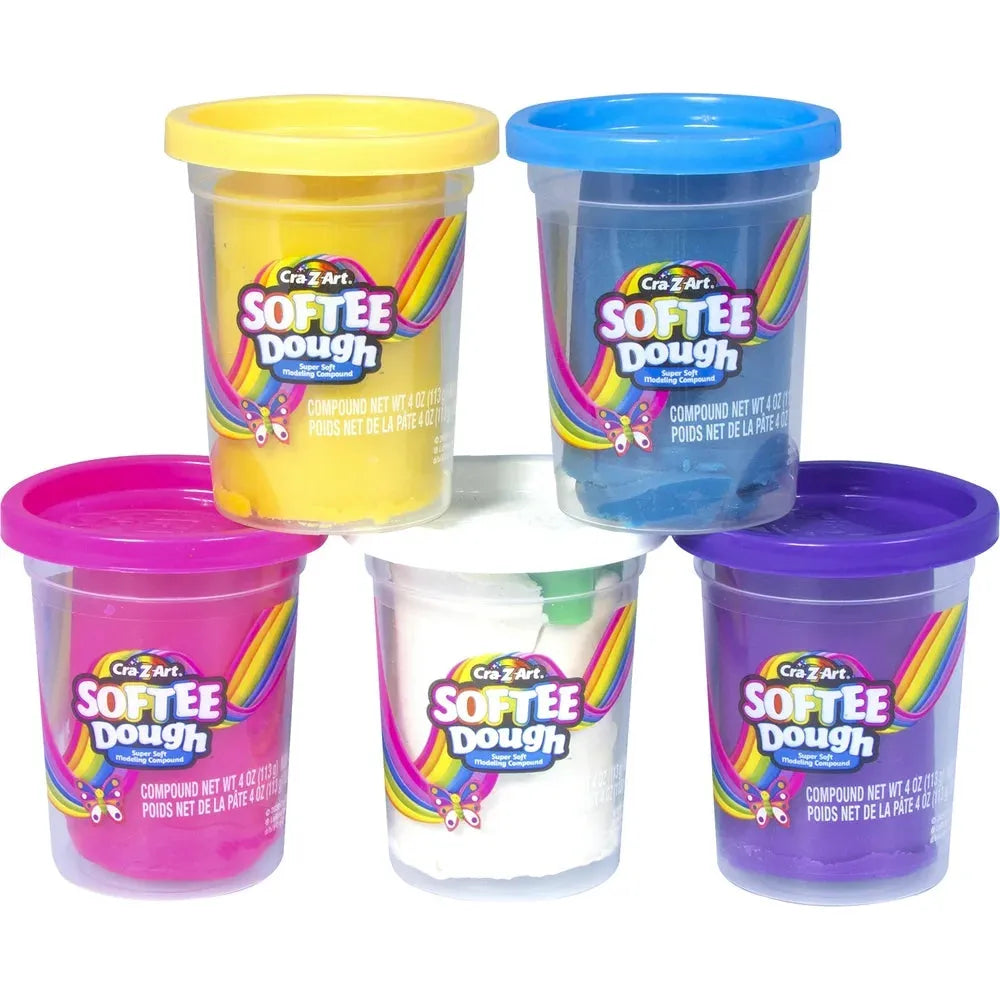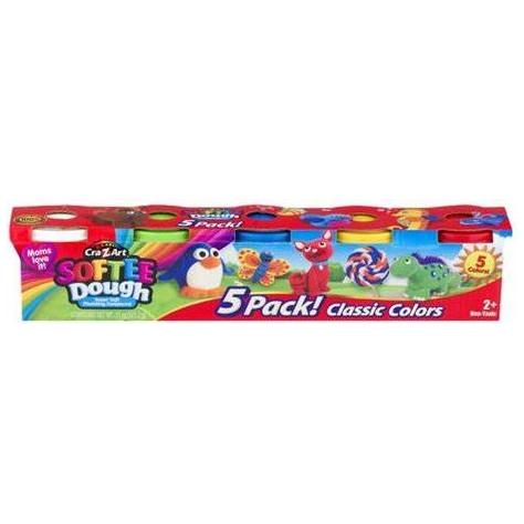 Cra-Z-Art Softee Dough 5 pack! 5 - 3oz cans of colorful super soft modeling Compound in basic primary colors! Using the mixing chart of the bottom of the package to mix and match tons of colors! Create endless animals, shapes and designs for hours of creative fun!