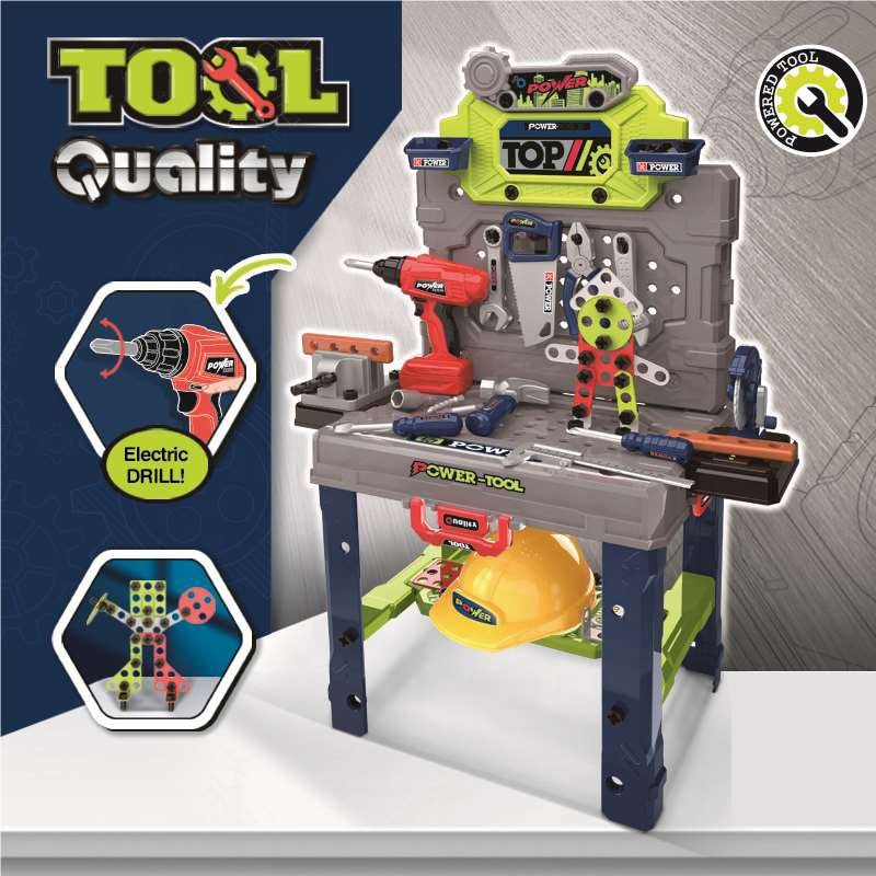 Let little builders get to work with this power tool workbench playset, complete with realistic tools and accessories! Standing at 81.5 cm tall, this colorful workbench features a sturdy design and includes toy versions of a drill, saw, wrench, screwdriver, safety helmet, and more. With pegboard-style storage and a variety of bolts and parts, it encourages imaginative role play, motor skill development, and hands-on learning. Perfect for aspiring young handymen and handywomen aged 3 and up!