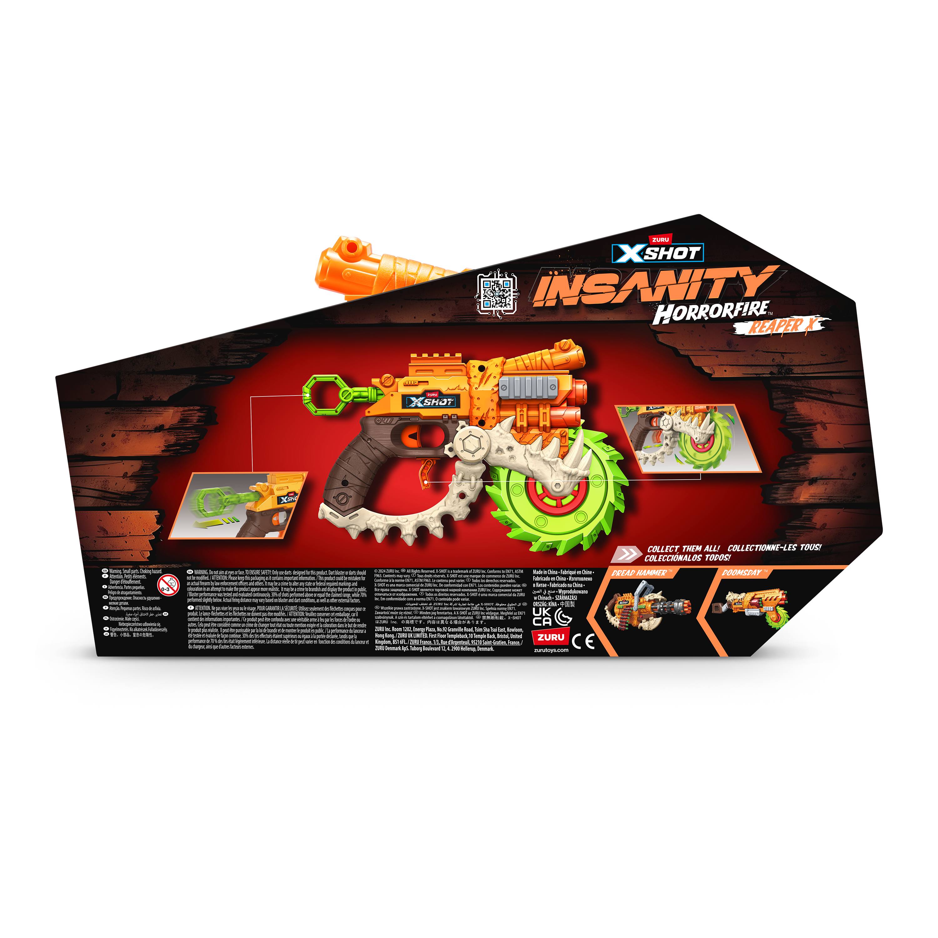 - Saw Blade Action!: The XSHOT Insanity HorrorFire Reaper X features a secondary trigger which activates a spinning saw blade, giving you even more ways to play!