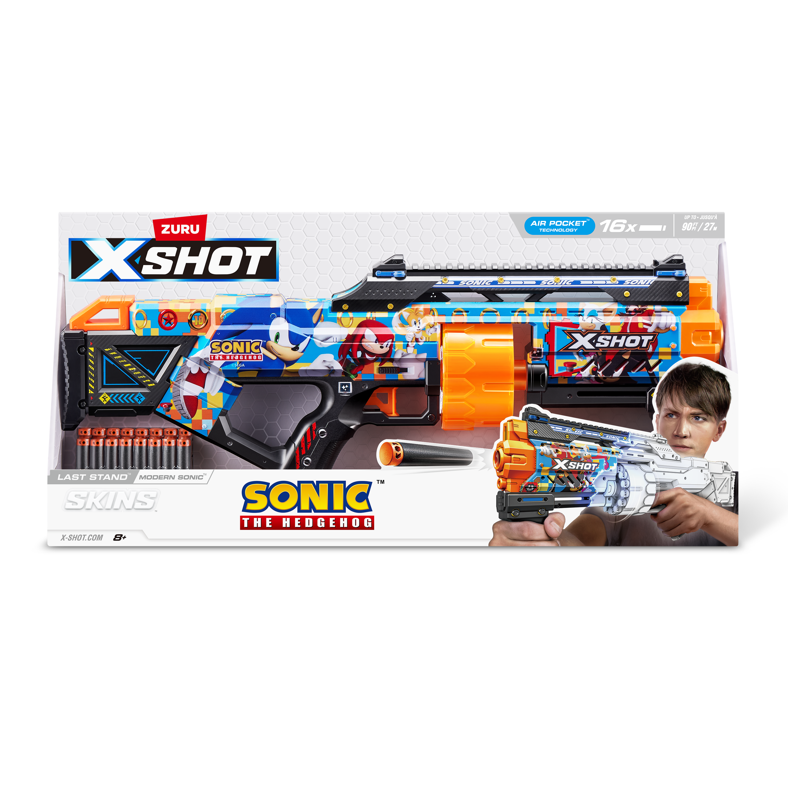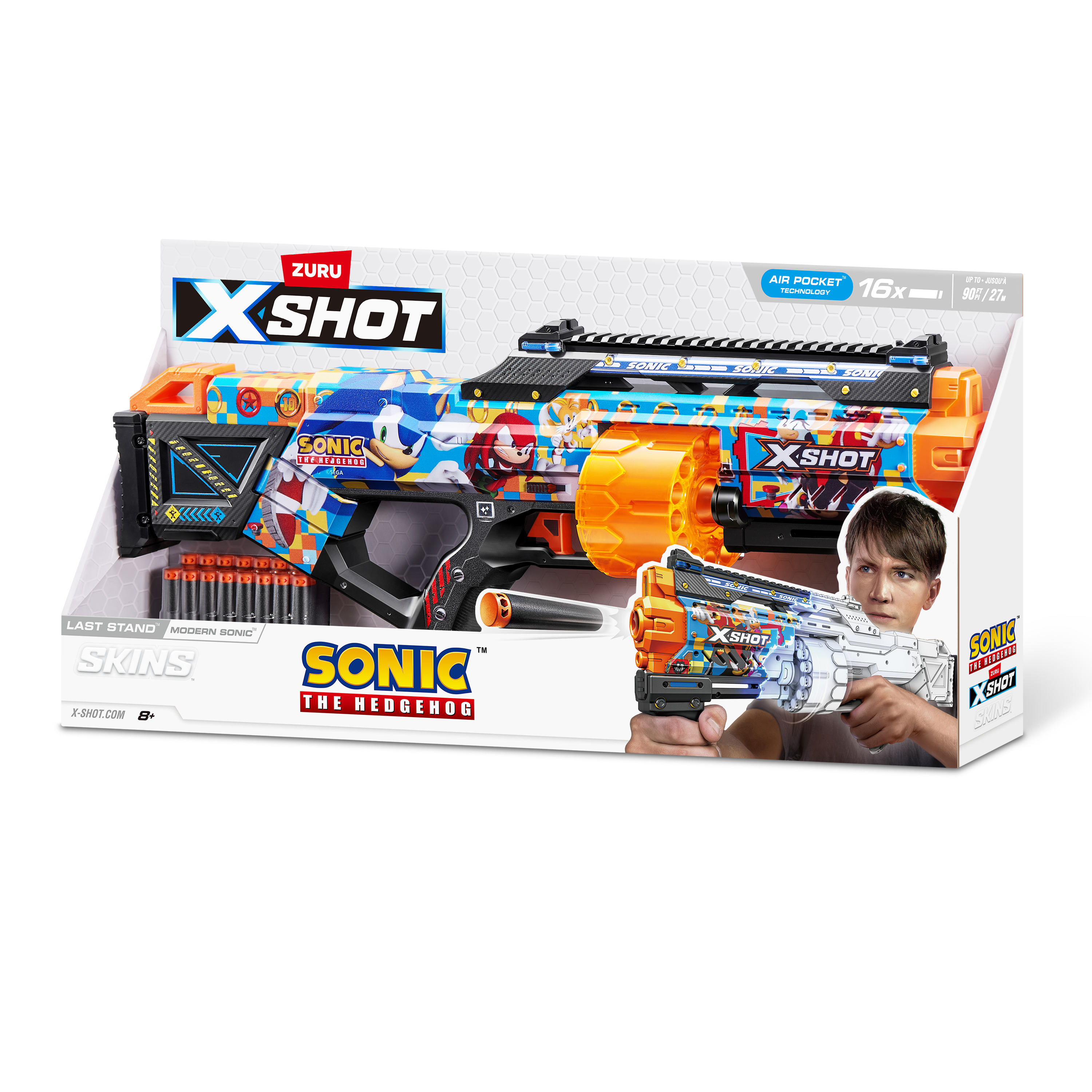 XSHOT SKINS LAST STAND Modern Sonic, Sonic The Hedgehog Blaster (16 Air Pocket Technology Darts) 36704 by ZURU