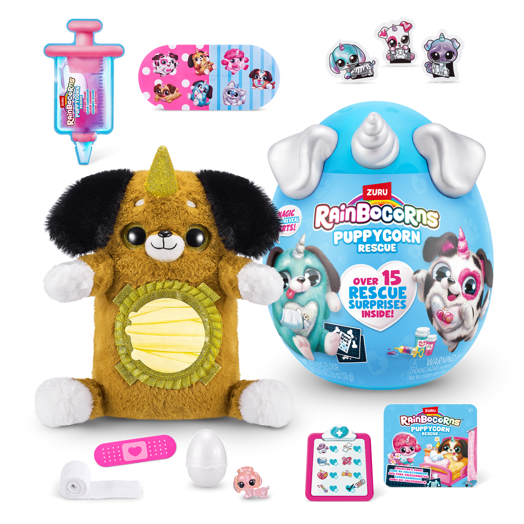 - Over 12 Surprises to Discover: Help nurse the poorly pups of Rainboville back to health with Puppycorns rescue! Each puppy patient comes complete with, a Dr Boo-Boocorn, Peel 'n' heal heart, bandage stickers, health report, x-rays, syringe slime and bandage! Use the surprises to rescue your Puppycorn!