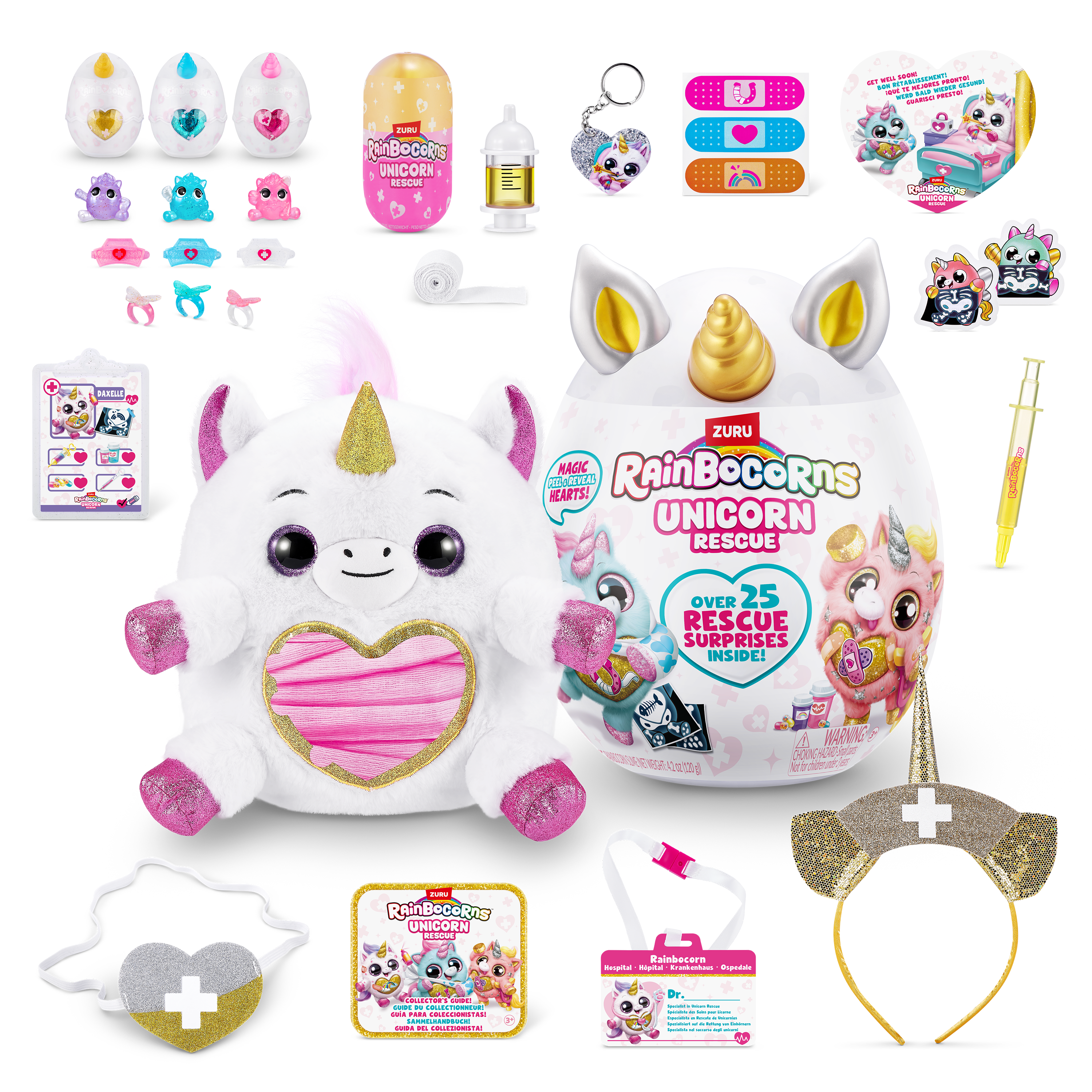 - Over 25 Surprises to Discover: Rainbocorns Unicorn rescue is packed with over 25 magical surprises to help heal your fuzzy friend. Use the health report, x-ray stickers, magic wand and healing syringes to rescue your Rainbocorn. Need help along the way? There are three brand new Dr Boo-Boocorns to discover and collect to help you save Rainboville.