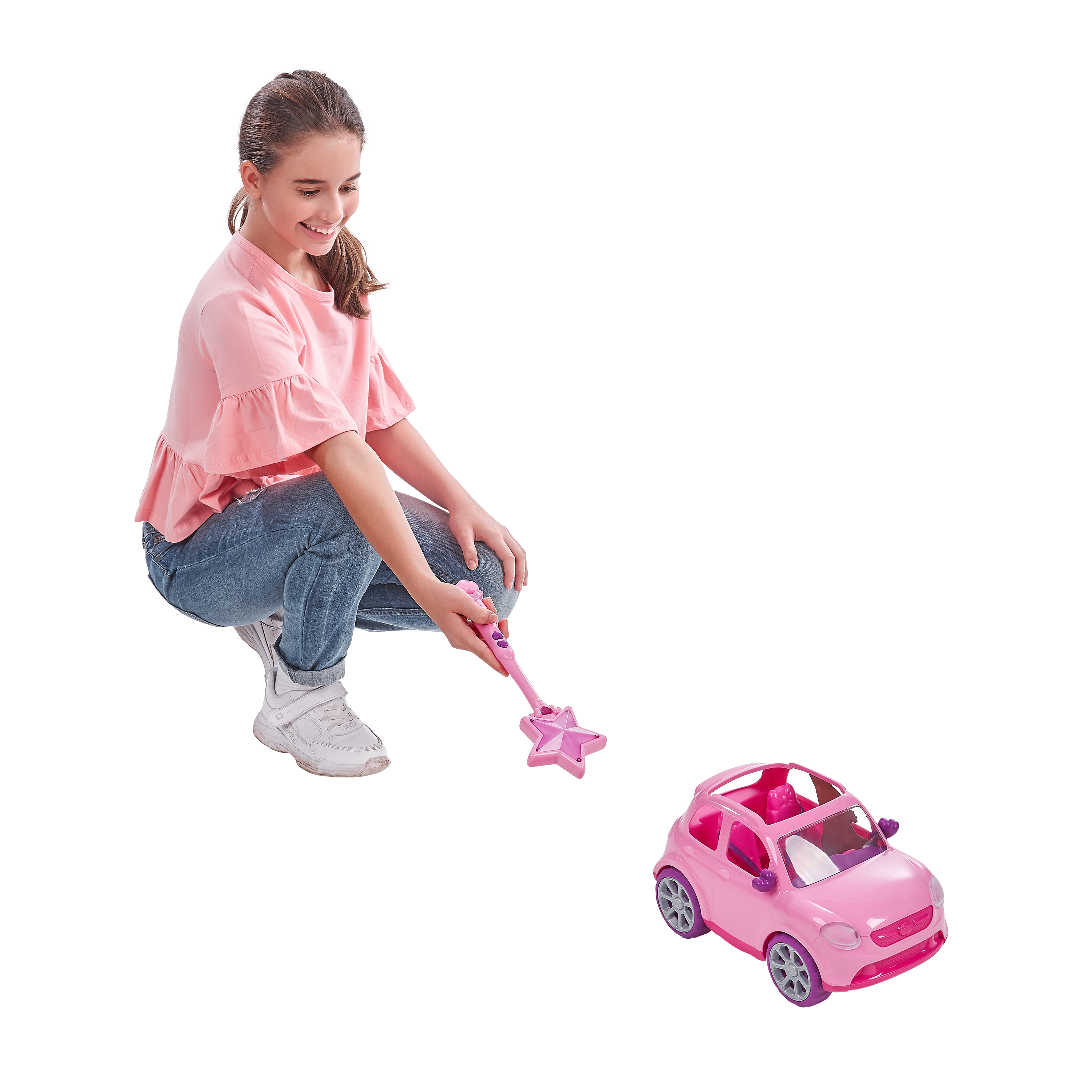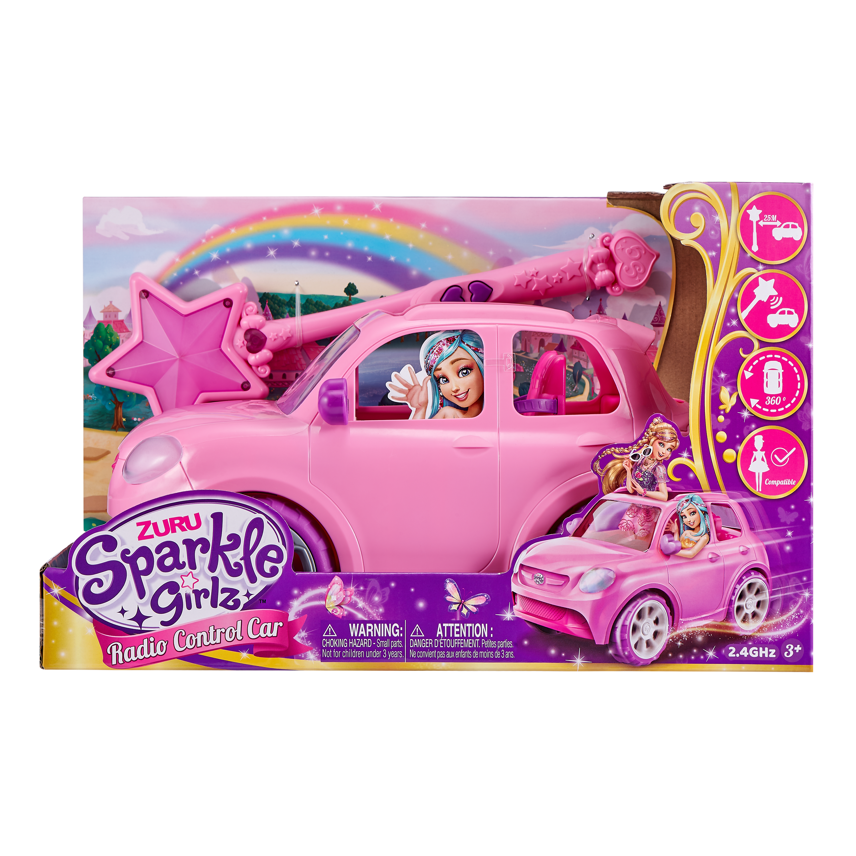 ZURU Sparkle Girlz Radio Control Car is the ultimate set for any girl! Beautifully design car with detailed exterior and interior. Car is controlled by magical radio control wand. Tilt wand from side to side with wrist action to turn car from left to right. Make sure you are holding down the forward or backward buttons for movement. 360 degree control! Range reached for up to 25 metres! Perfect for indoor and outdoor fun. Car seats 2 dolls (not included) with seat belts and is compatible with a range of other dolls!. Get your friends ready for the ultimate Sparkle adventure! Sparkle every day at an amazing value too!