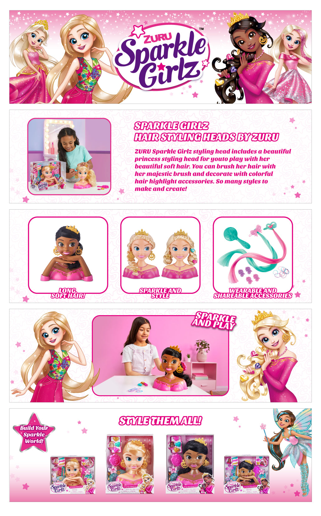 - Royal Finishing Touches: Give the princess a royal treatment with sparkly finishing touches like custom Sparkle Girlz earrings and a tiara fit for royalty.