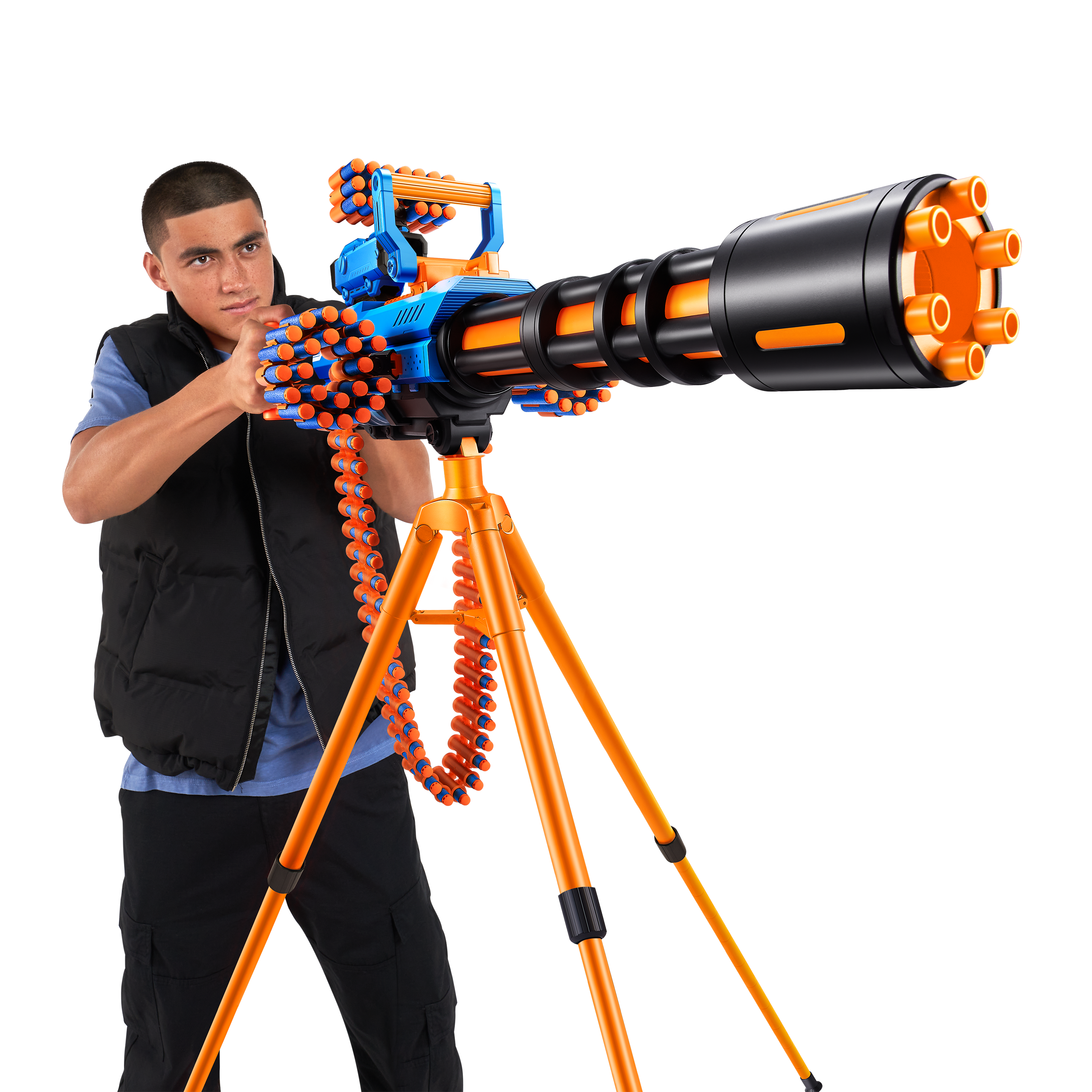 - Rage Fire Tripod: The Tripod rotates a full 360 degrees and pivots vertically to blast in any direction. Take the blaster off the tripod when you need to be on the move.