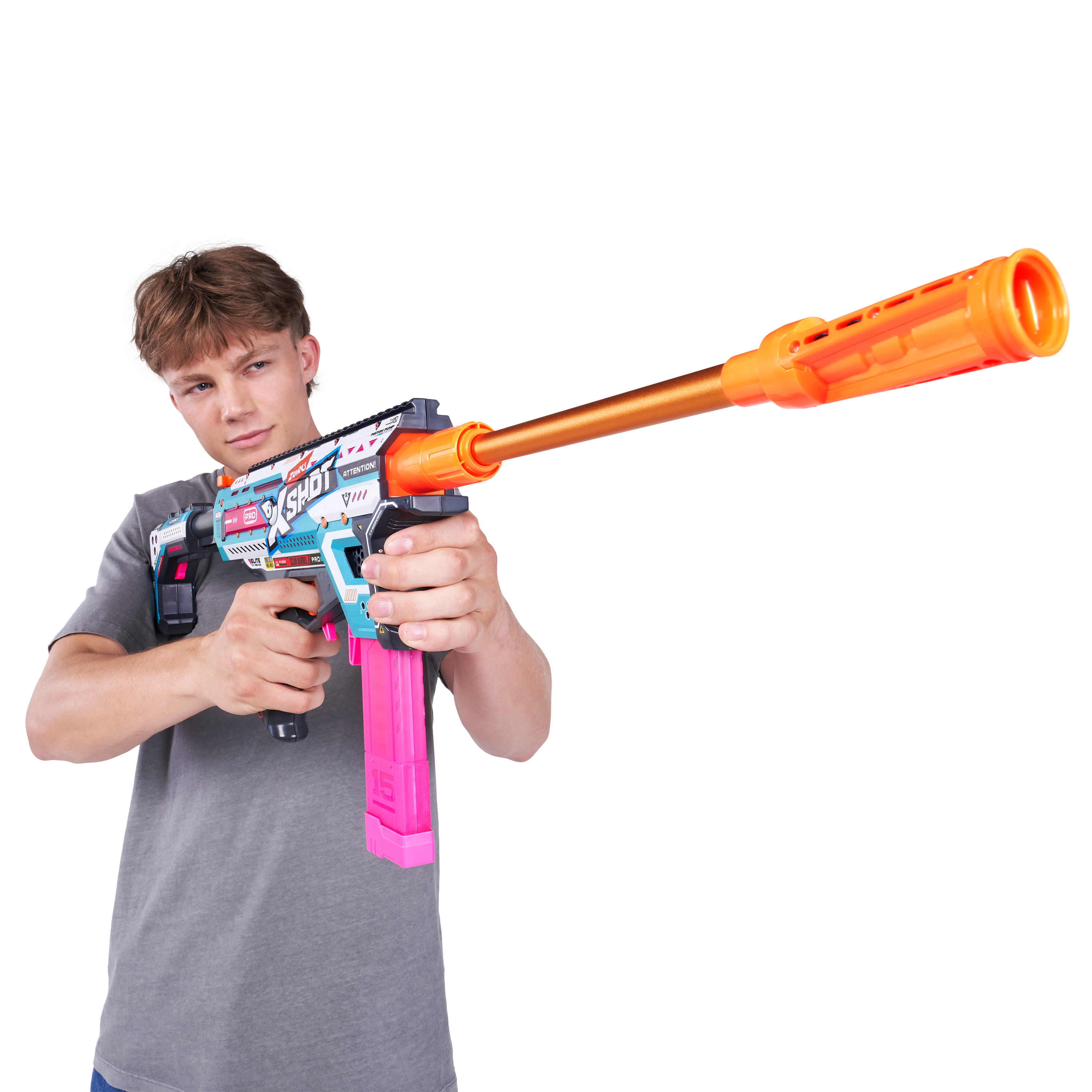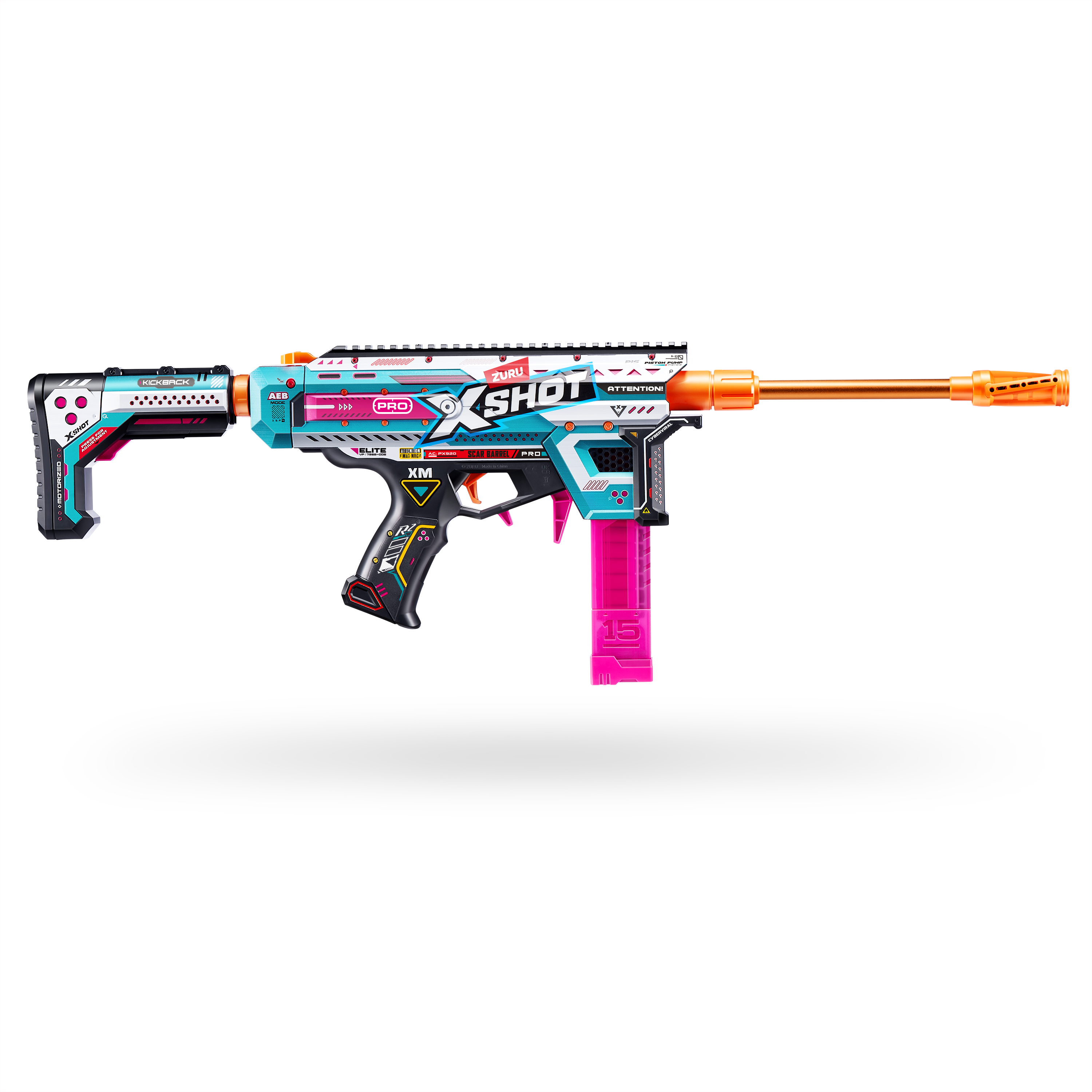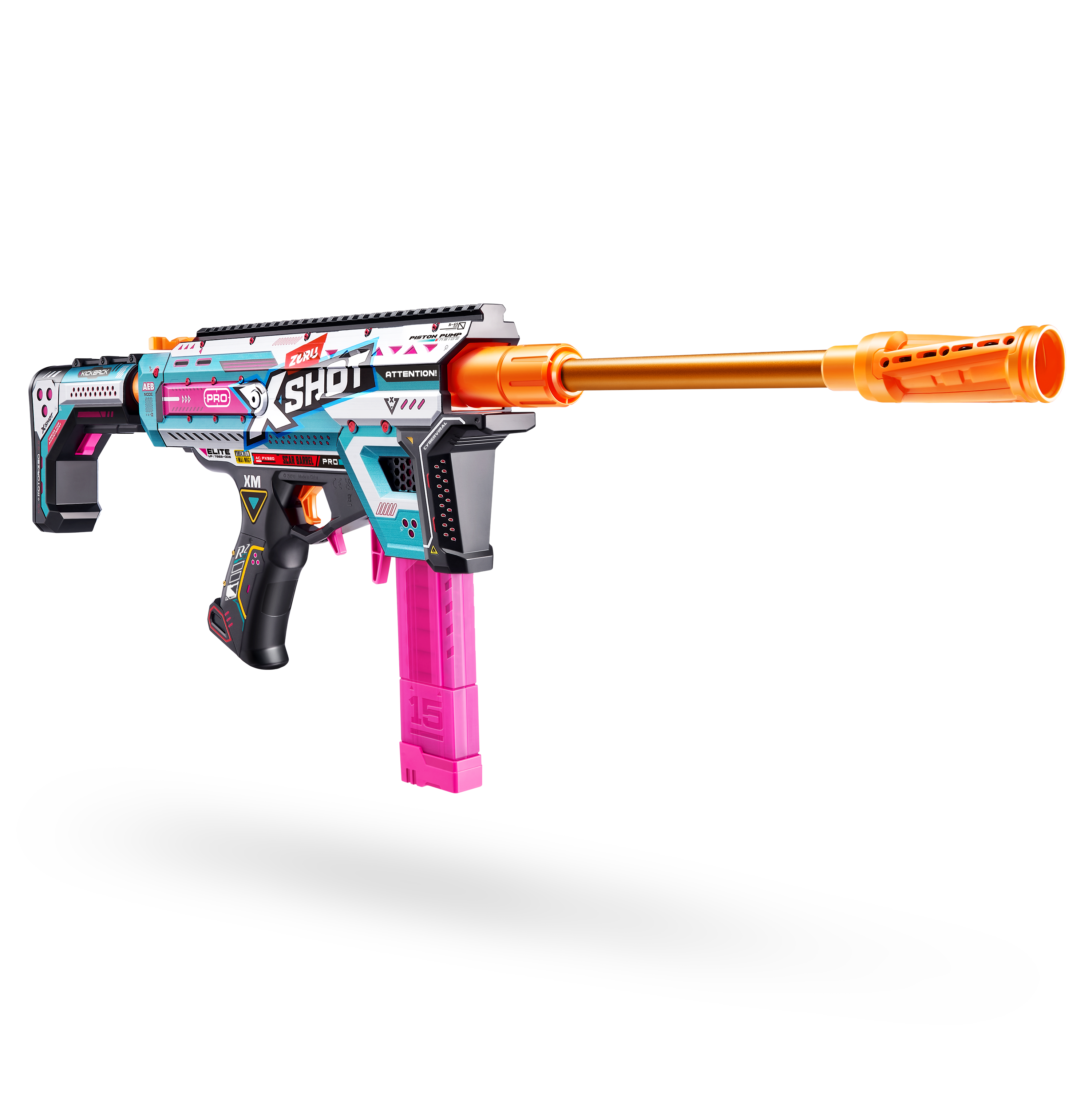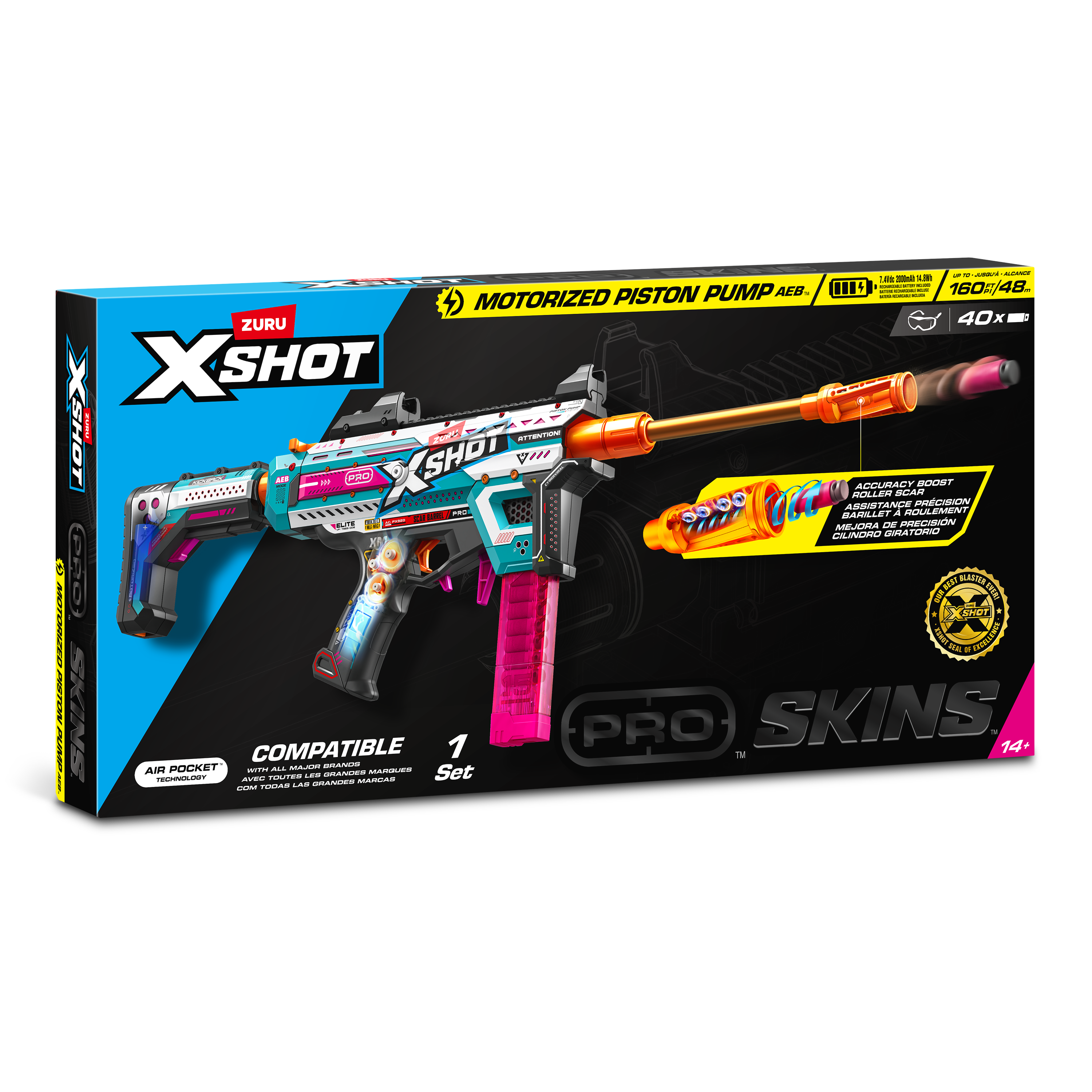 Elevate your dart blasting skills with the XSHOT Pro Motorized Piston Pump blaster, the first ever XSHOT AEB! Expertly crafted for precision and power, this blaster, marked by XSHOT's renowned seal of excellence, is our most advanced model yet. Its accuracy pro roller scar ensures stability and precision in every blast, even in the heat of battle. Recommended for ages 14+, with an impressive firing range of up to 160fps, you'll hit your targets with ease and maintain a tactical advantage over your opponents. The innovative roller scar not only boosts accuracy but also packs a punch enhancing the blasters performance. Whether you're battling your friends or taking on distant targets, the XSHOT Pro Motorized Piston Pump enables you to dominate any situation. Experience the NEXT LEVEL of dart blasting with the XSHOT Pro Motorized Piston Pump AEB and make every blast count!