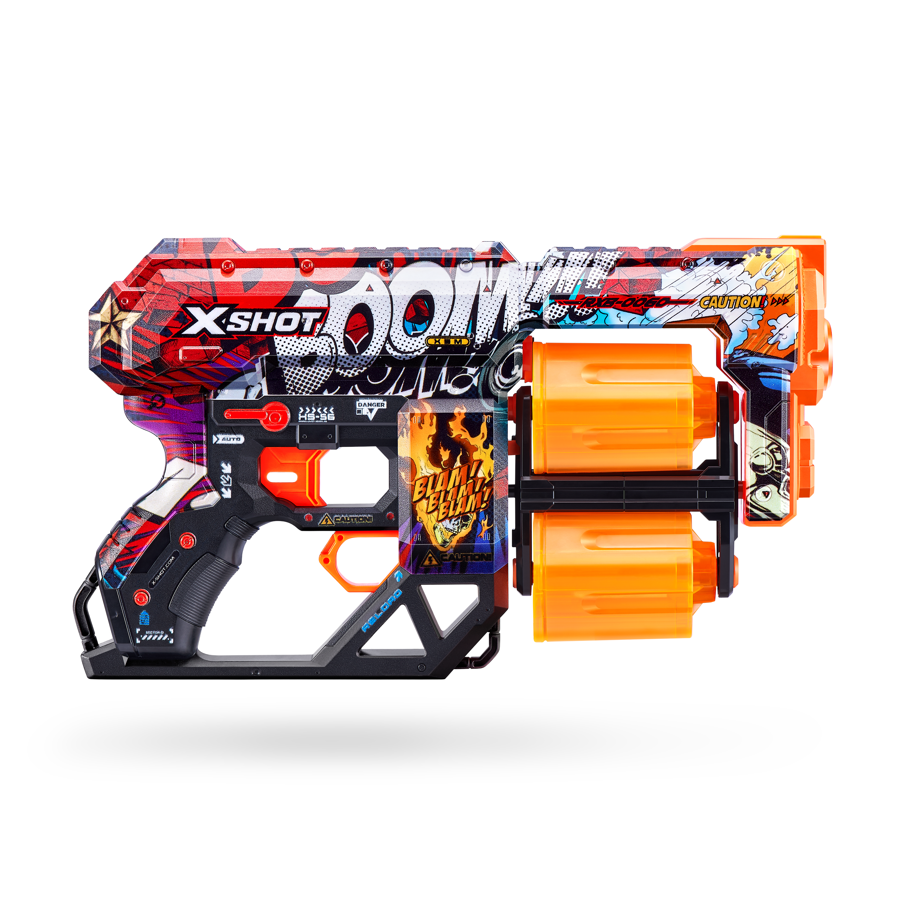 1. Choose your Skin: X-Shot Skins takes blaster customization to the next level. With state-of-the-art printing technology, the X-Shot Skins Dread offers 7 unique skins to choose from, allowing you to personalize your blaster for a truly unique battle experience. Choose different, choose X-Shot Skins.