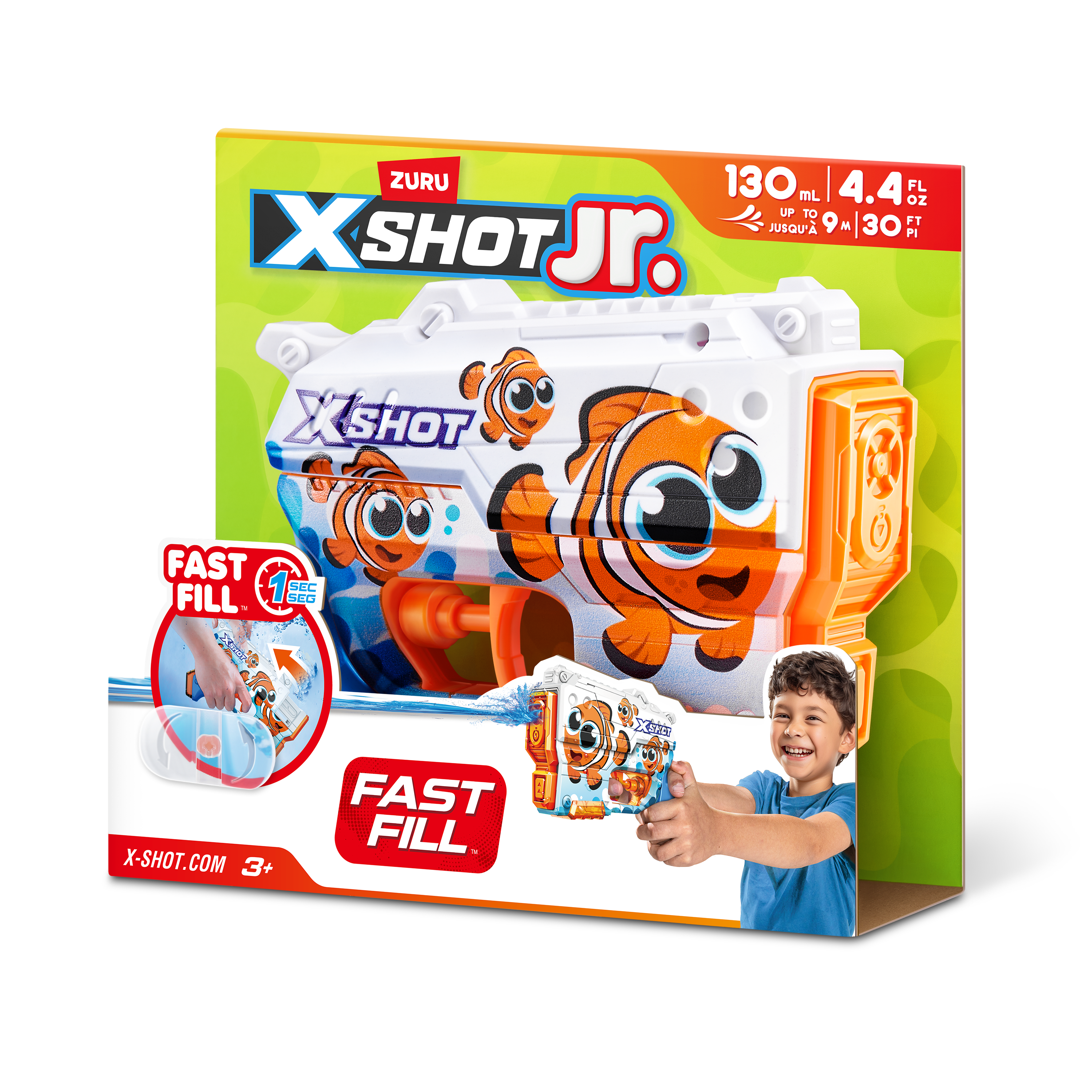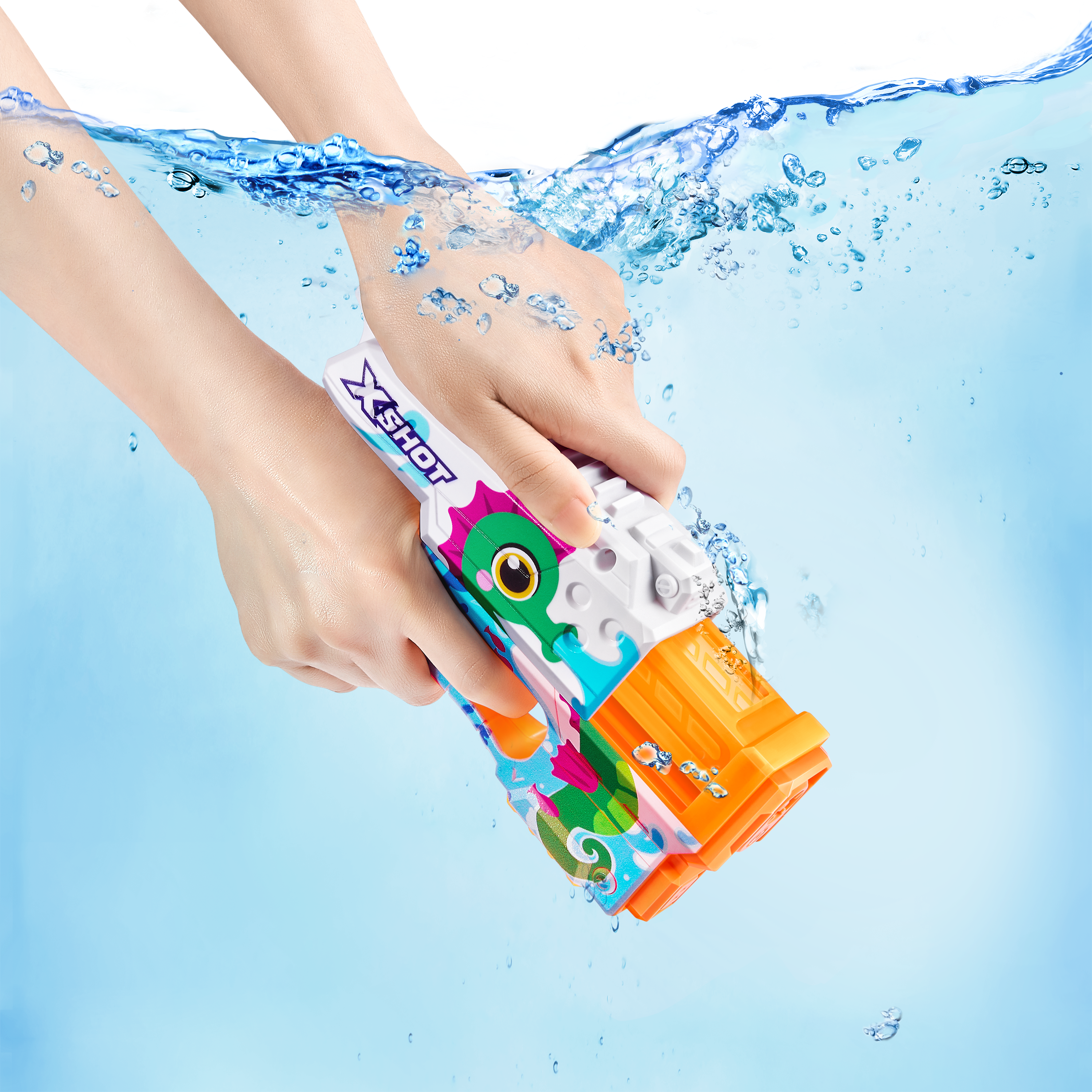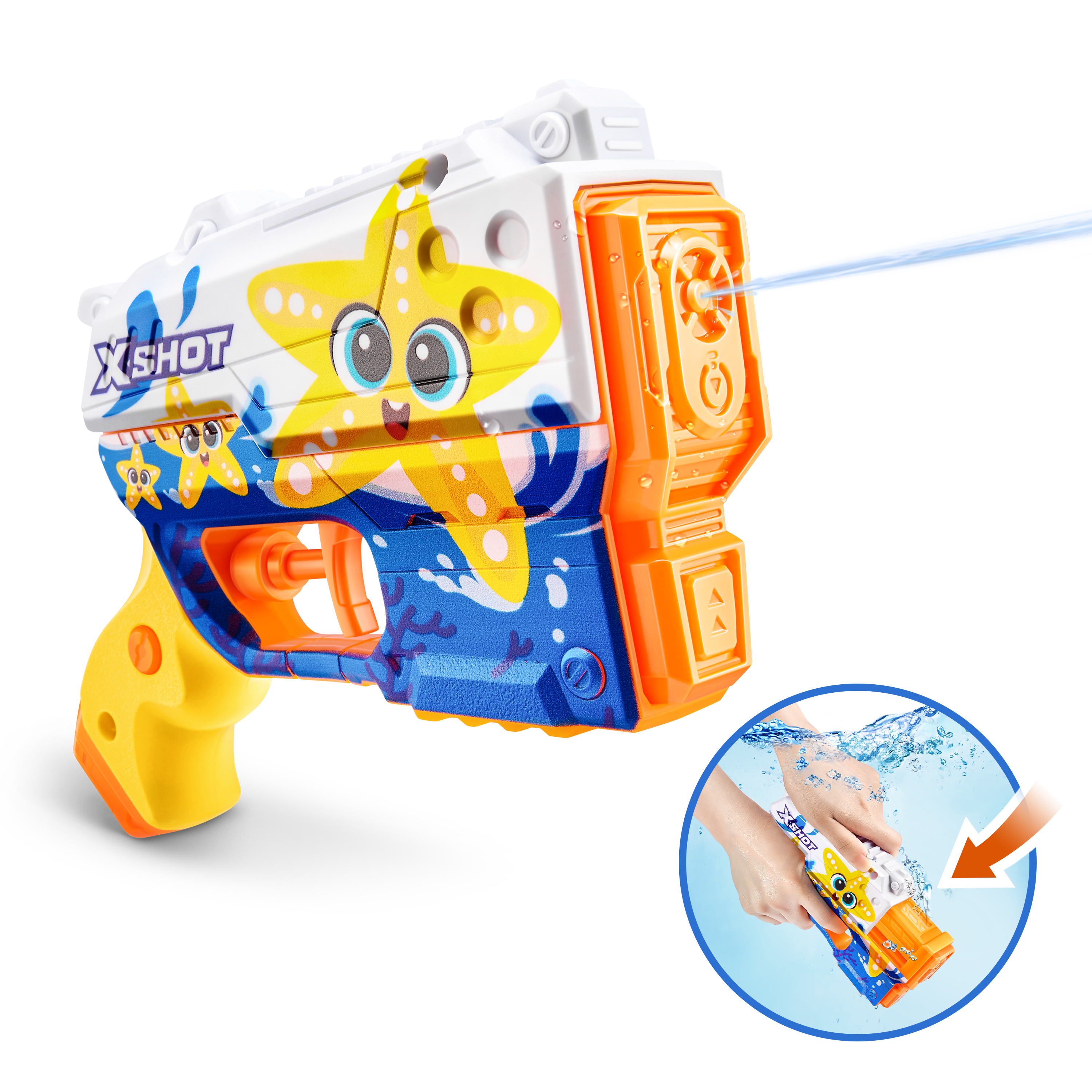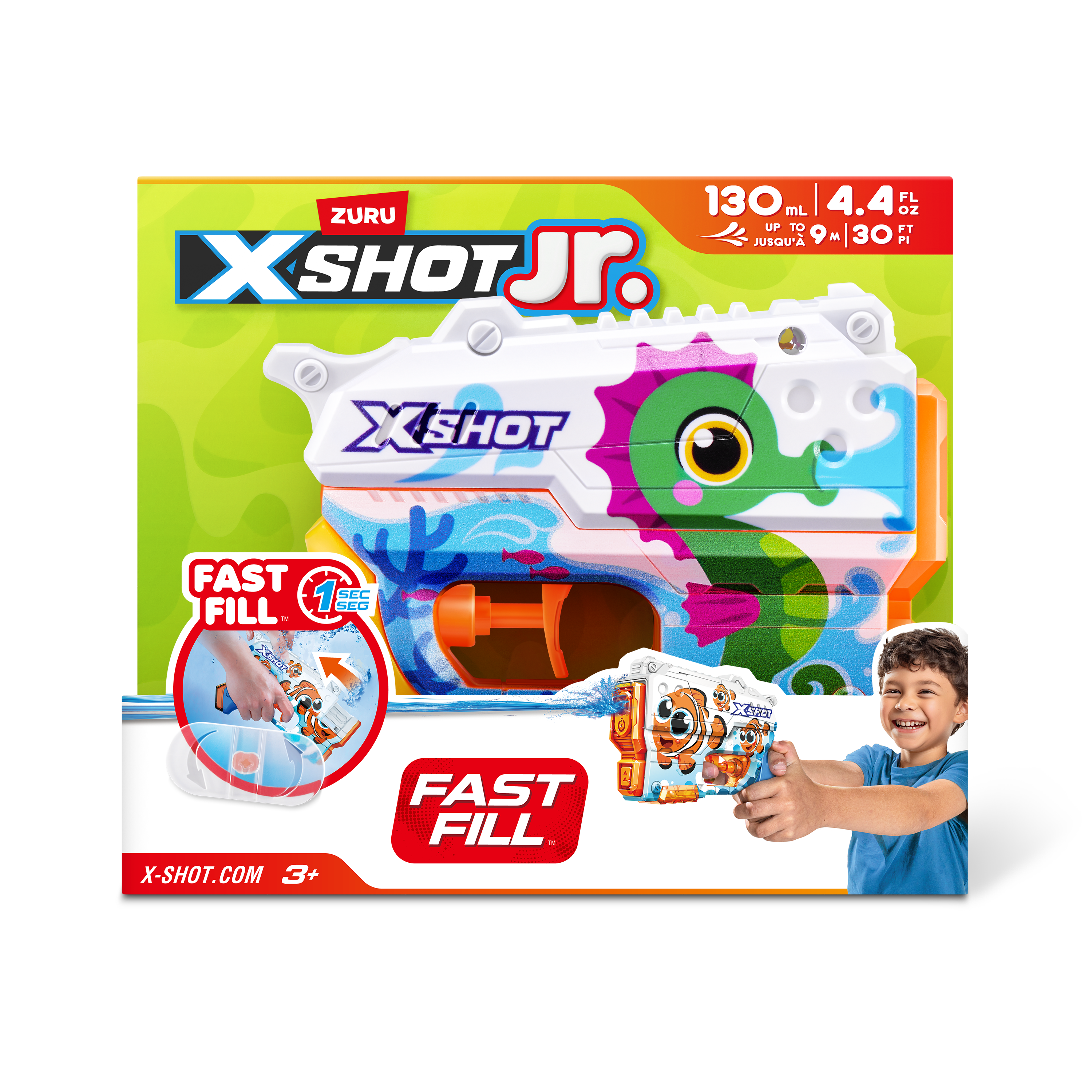 XSHOT Junior Fast-Fill is made for splash-tastic fun for little ones! XSHOT Junior Fast-Fill blasters are designed for small hands, with easy grip design and Fast-Fill technology for easy refill. XSHOT Fast-Fill allows you to refill your blaster in 1 second, just dunk, fill and close. These blasters hold 130ml / 4.4 Fl Oz.and can blast water up to 9m / 30 feet. There are 6 sea themed designs to find and play with.