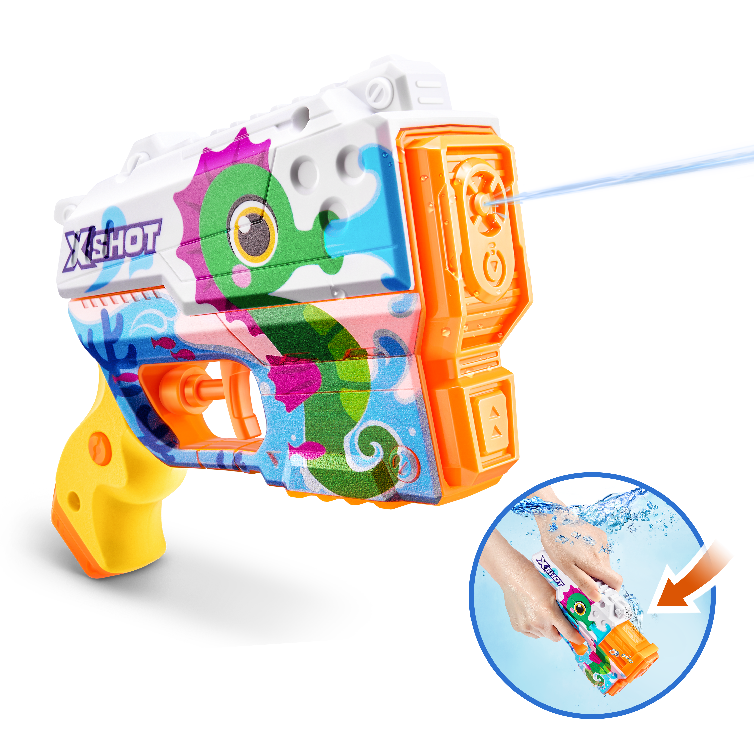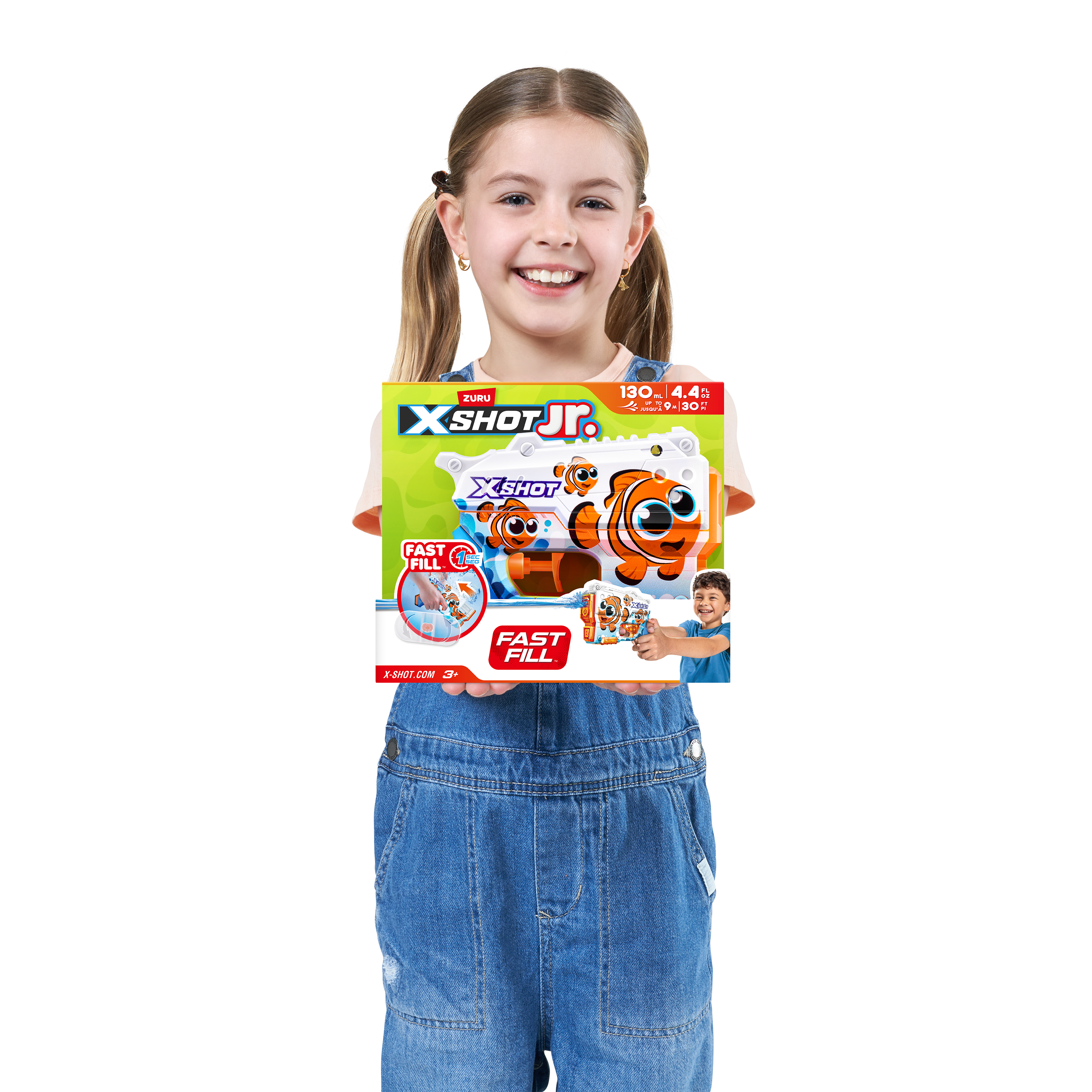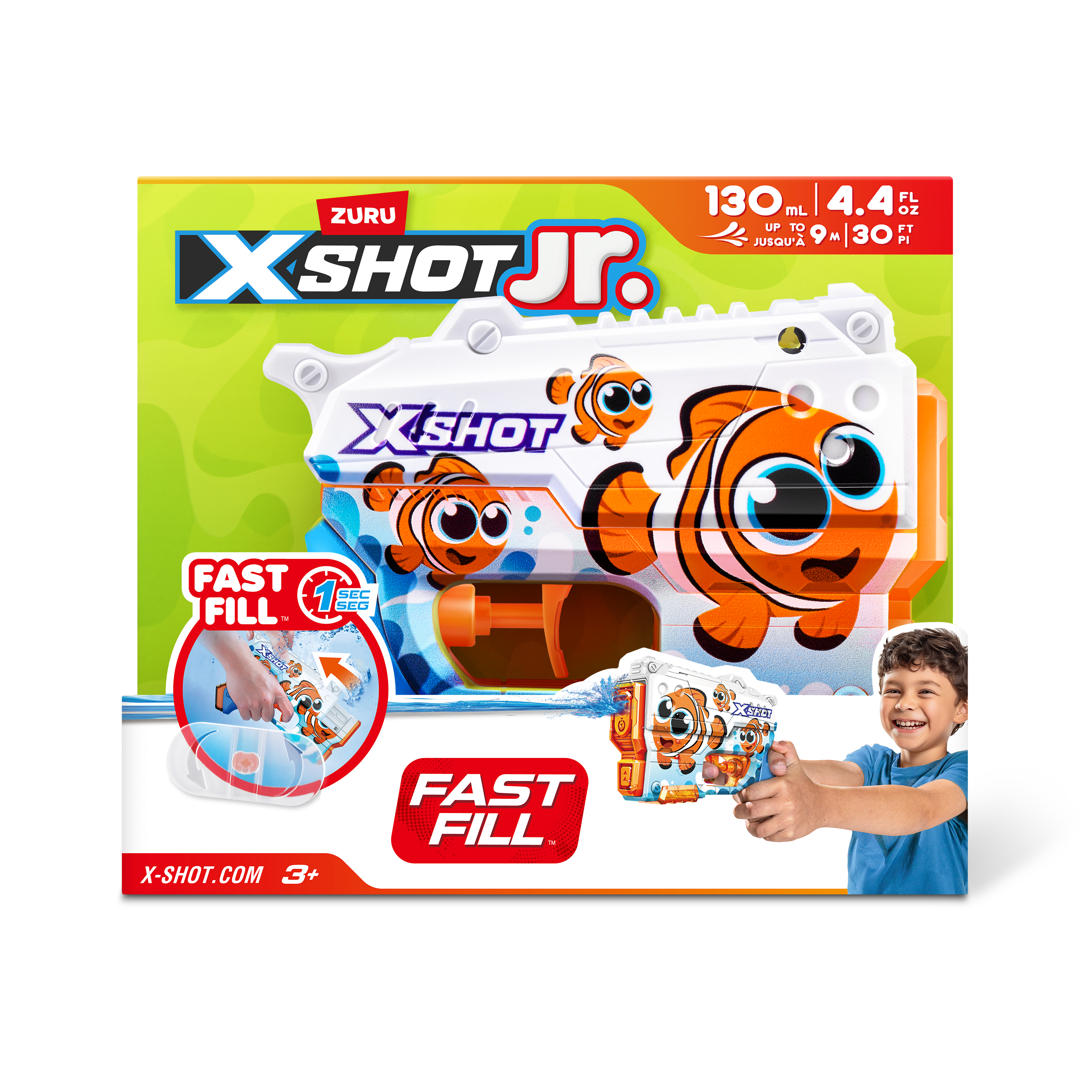 XSHOT Junior Fast-Fill is made for splash-tastic fun for little ones! XSHOT Junior Fast-Fill blasters are designed for small hands, with easy grip design and Fast-Fill technology for easy refill. XSHOT Fast-Fill allows you to refill your blaster in 1 second, just dunk, fill and close. These blasters hold 130ml / 4.4 Fl Oz.and can blast water up to 9m / 30 feet. There are 6 sea themed designs to find and play with.