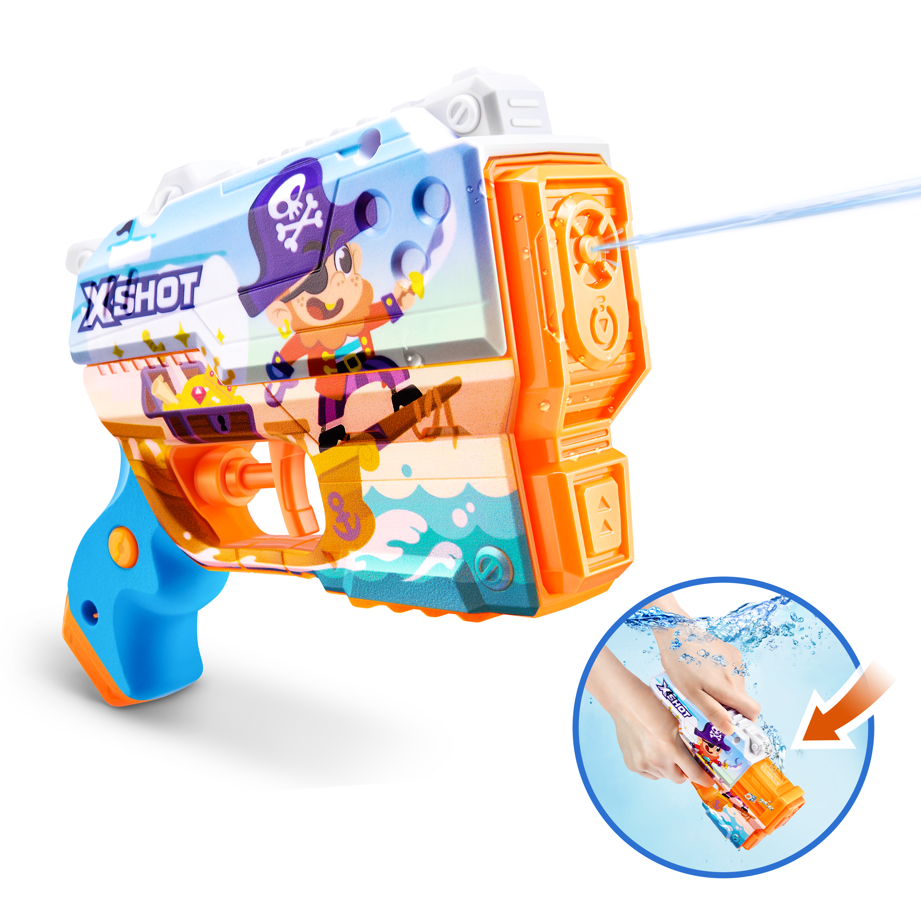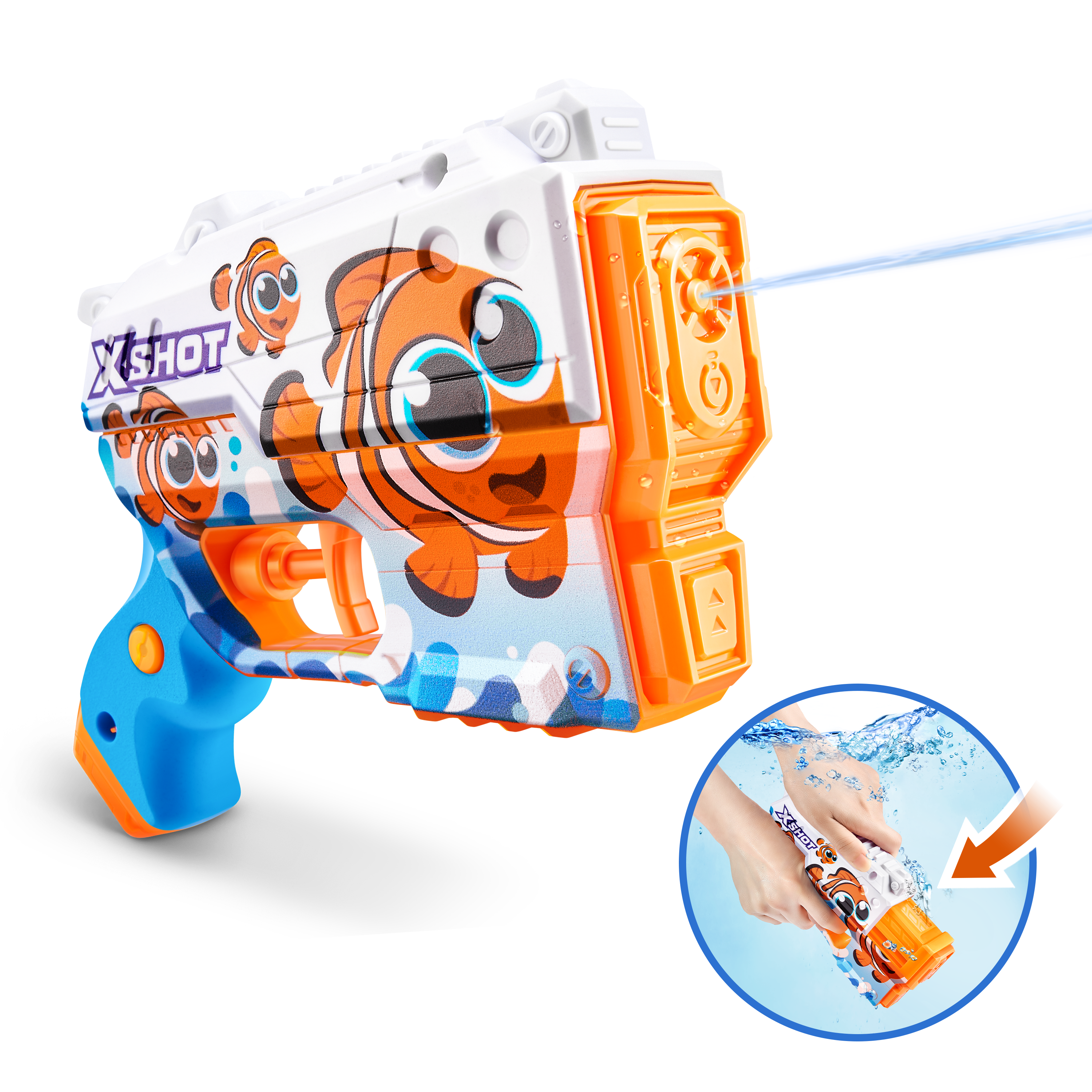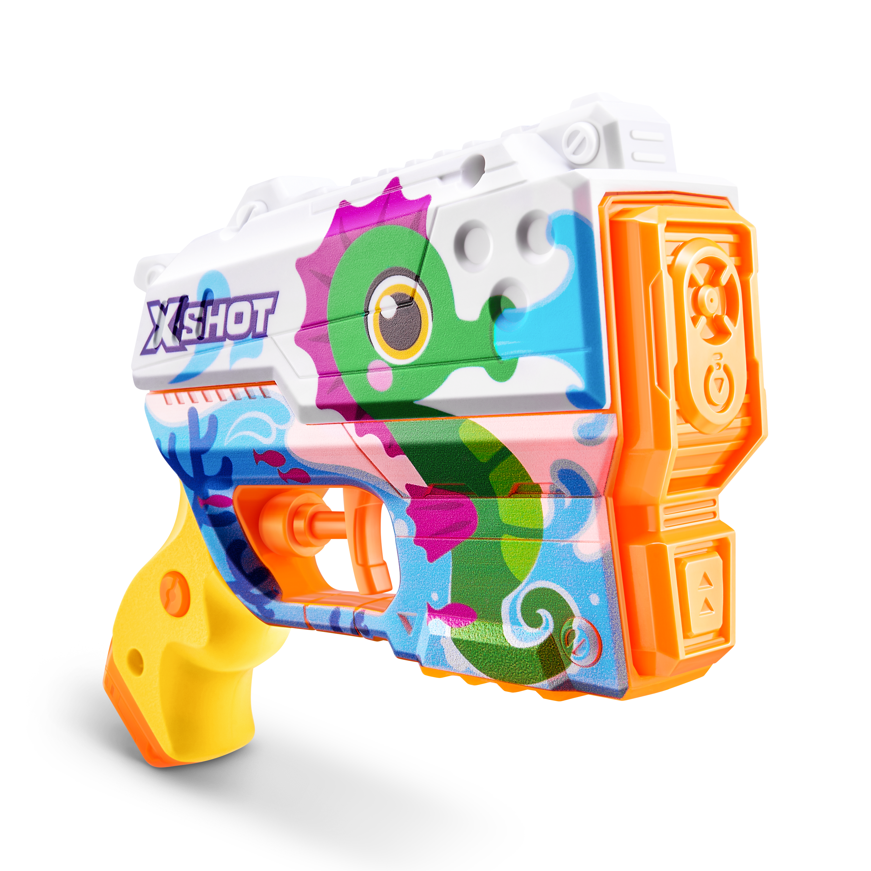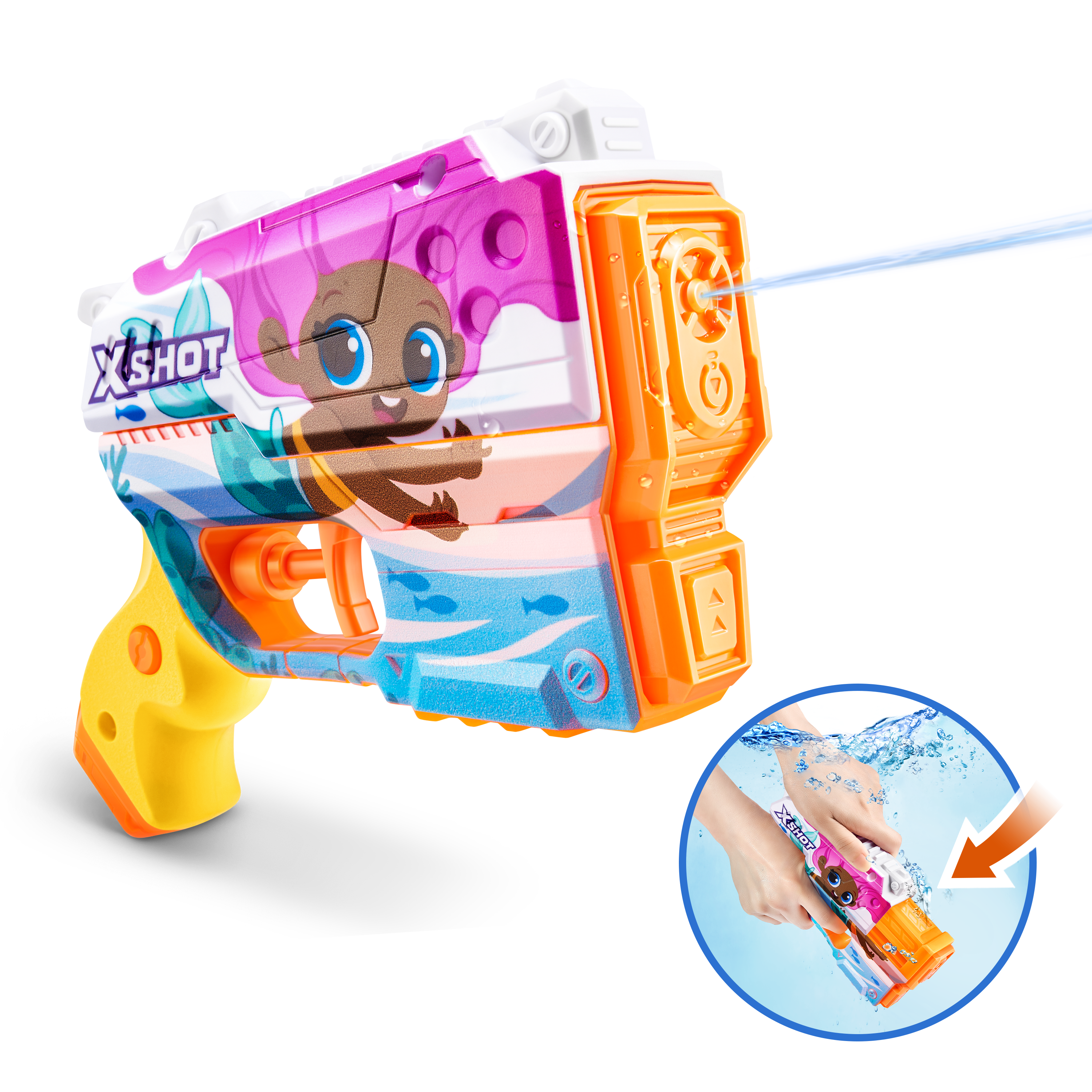 XSHOT Junior Fast-Fill is made for splash-tastic fun for little ones! XSHOT Junior Fast-Fill blasters are designed for small hands, with easy grip design and Fast-Fill technology for easy refill. XSHOT Fast-Fill allows you to refill your blaster in 1 second, just dunk, fill and close. These blasters hold 130ml / 4.4 Fl Oz.and can blast water up to 9m / 30 feet. There are 6 sea themed designs to find and play with.