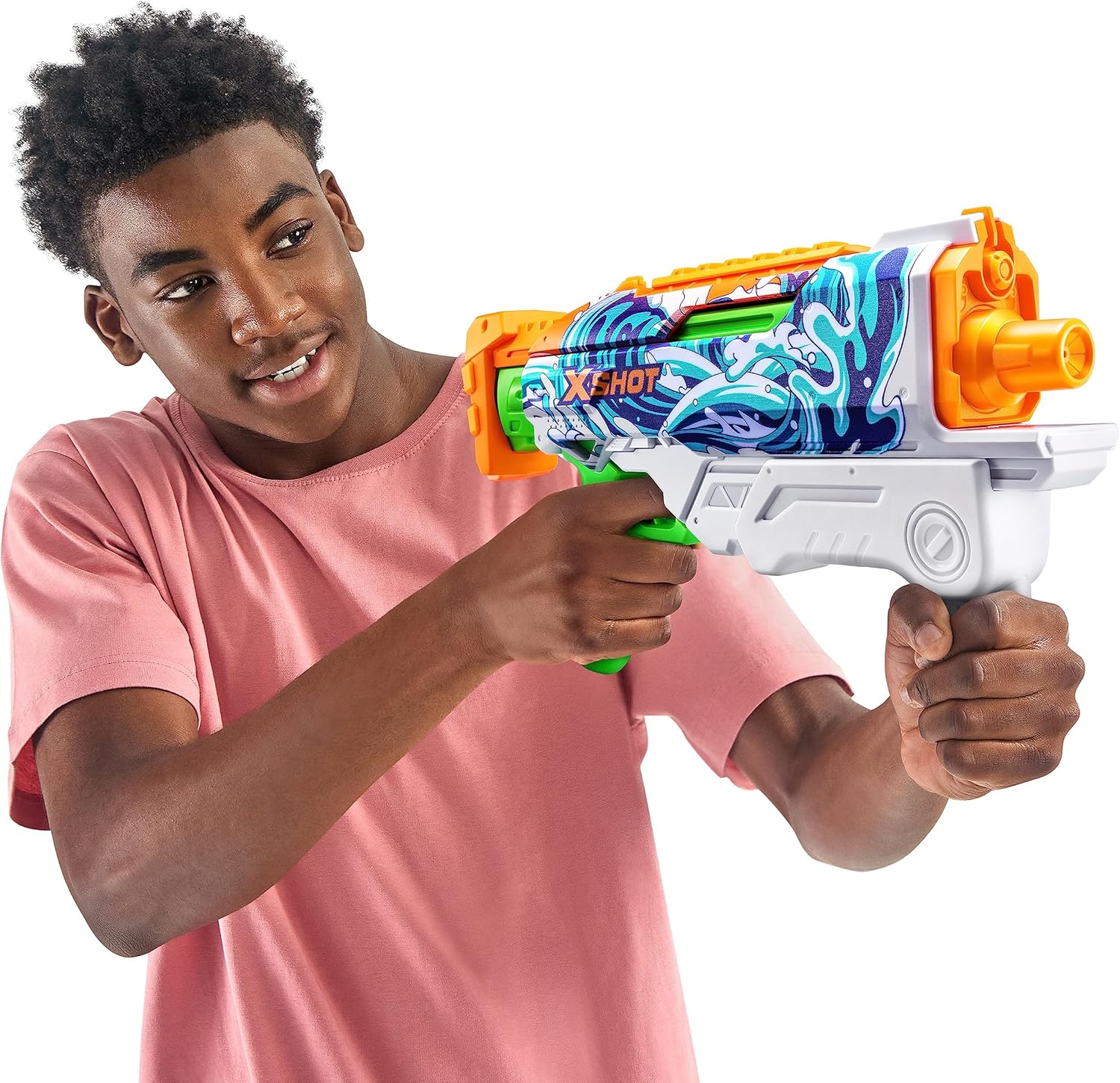 Make Summer your own with the XSHOT Fast-Fill Skins range! XSHOT Fast-Fill Hyperload allows you to refill your blaster in just 1 second and get back to the water blaster action. Just dunk, fill and close with rapid sealing technology. It blasts up to 33 feet /10 meters with its 500mL/ 17 Fl oz. water capacity tank!