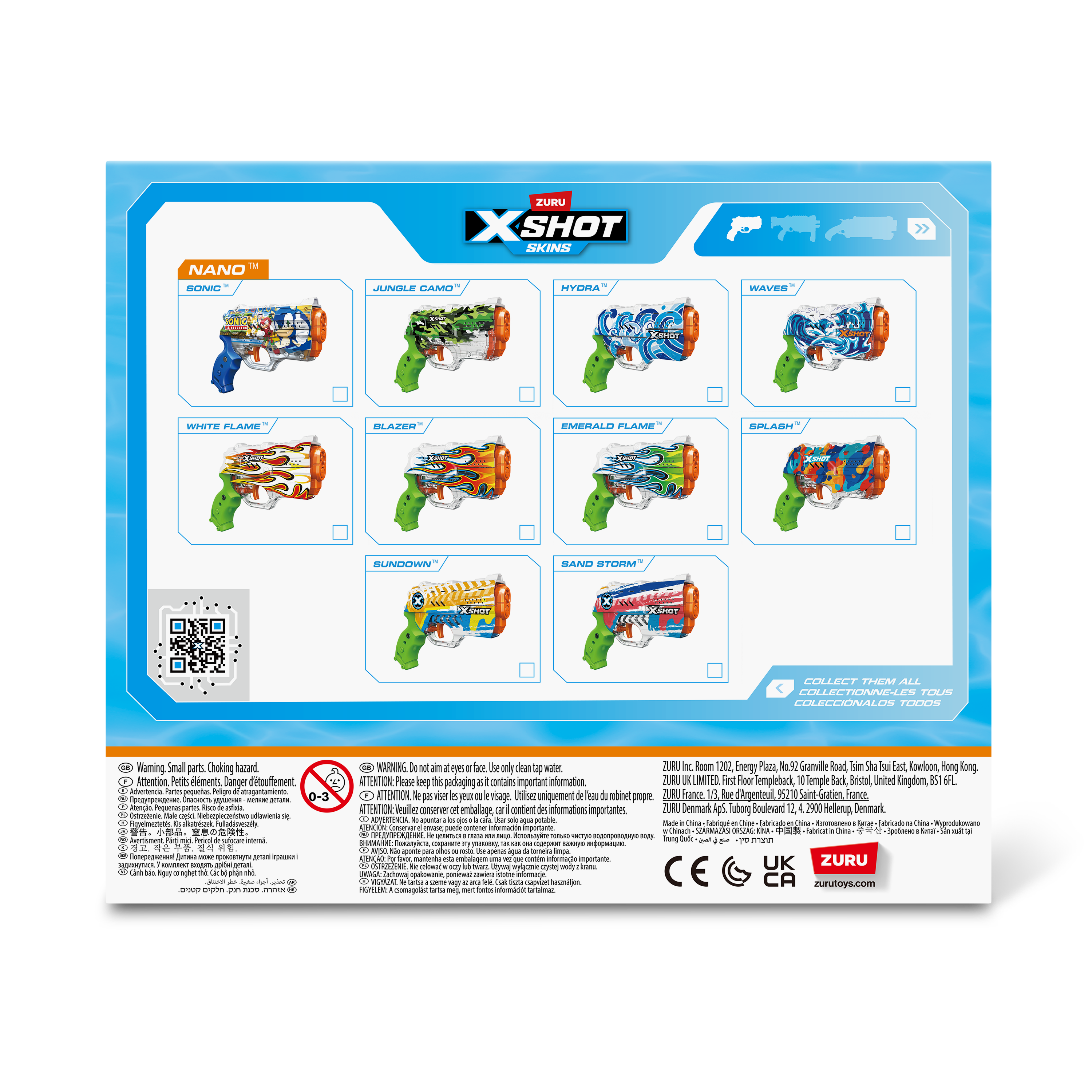 - Package Includes: 1 x XSHOT Fast-Fill Skins Nano Sonic The Hedgehog Water Blaster.